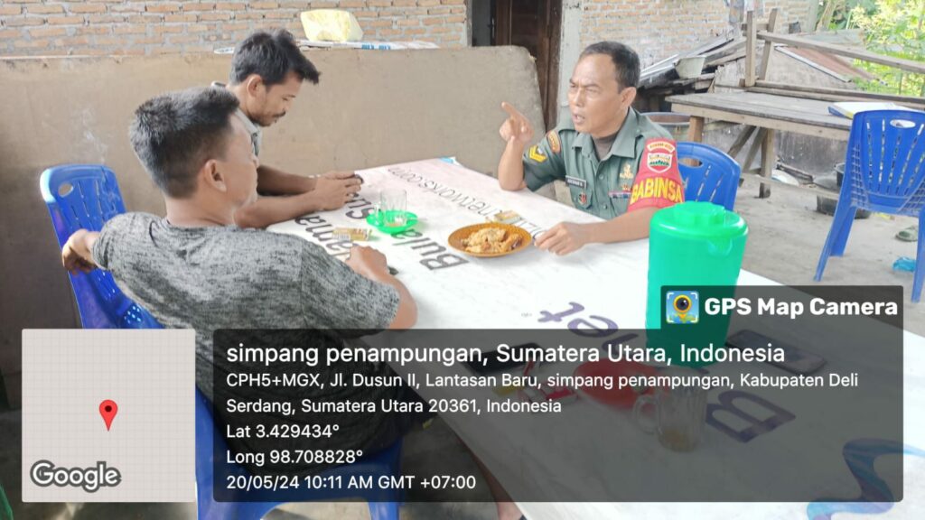globalcybernews.com -PATUMBAK – Babinsa merupakan sarana dalam menjalin hubungan silaturahmi bersama warga masyarakat, sehingga dengan cepat dalam memperoleh informasi yang ada di daerah binaan.Pada kesempatan komsos tersebut Babinsa Koramil 0201 Medan 05/Deli Tua Kodim 0201/Medan Sertu Adesmar, Menyampaikan kepada warga desa binaannya,Dan sembari makan sambil ngopi di warung kopi desa Lantasan Baru kec.patumbak Kabupaten Kuansing, Bahwa pentingnya menjaga keamanan dan ketertiban di lingkungan desa. Senin, ( 20/05/2024 ).
