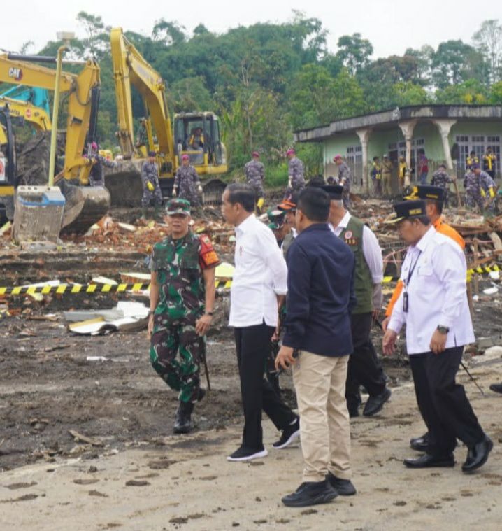 Di sini, Presiden melihat langsung dampak bencana yang terjadi, serta menerima penjelasan tentang langkah tanggap darurat yang telah dilakukan tim gabungan TNI-Polri dan stakeholder terkait lainnya.