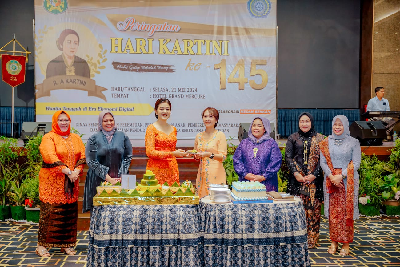 Dalam rangka memperingati Hari Kartini ke 145 Kota Medan Tahun 2024, TP PKK Kota Medan menggelar fashion show Kebaya Nasional di Hotel Grand Mercure Jalan Sutomo Medan, Selasa (21/5). Pesertanya, seluruh kader baik itu Ketua TP PKK Kecamatan dan Kelurahan hingga istri pimpinan perangkat daerah di lingkungan Pemko Medan.