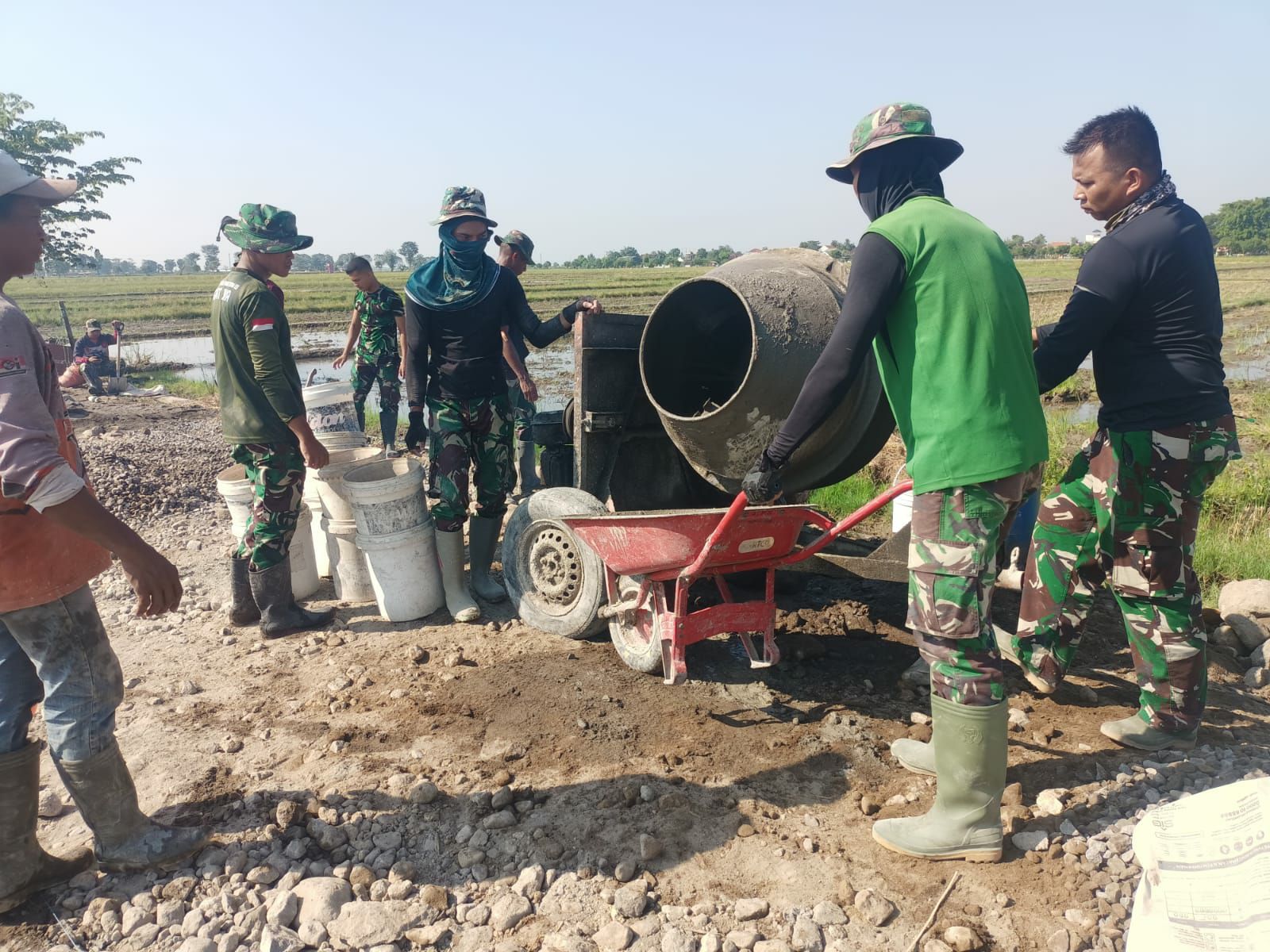 “Akhir-akhir ini memang turun hujan, namun alhamdulillah turun hujan di malam hari sehingga tidak mengganggu jalannya proses pekerjaan,” terang Babinsa Wirun Serma Siswanto.