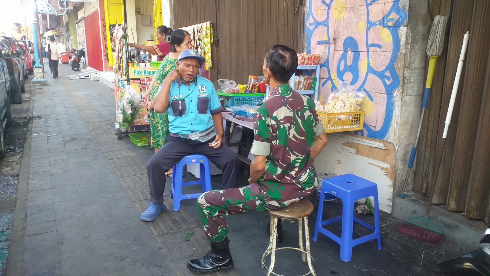 globalcybernews.com -Surakarta, Dalam menjalin komunikasi antara Aparat Komando Kewilayahan dengan masyarakat bisa dilakukan di mana saja. Seperti yang dilakukan Bati Komsos Koramil 03/Serengan Kodim 0735/Surakarta Serma Fitalis Erwan melakukan Komunikasi Sosial (Komsos) dengan juru Parkir Bpk.Tardi bertempat di jl.Dr Rajiman RT. 03 RW.