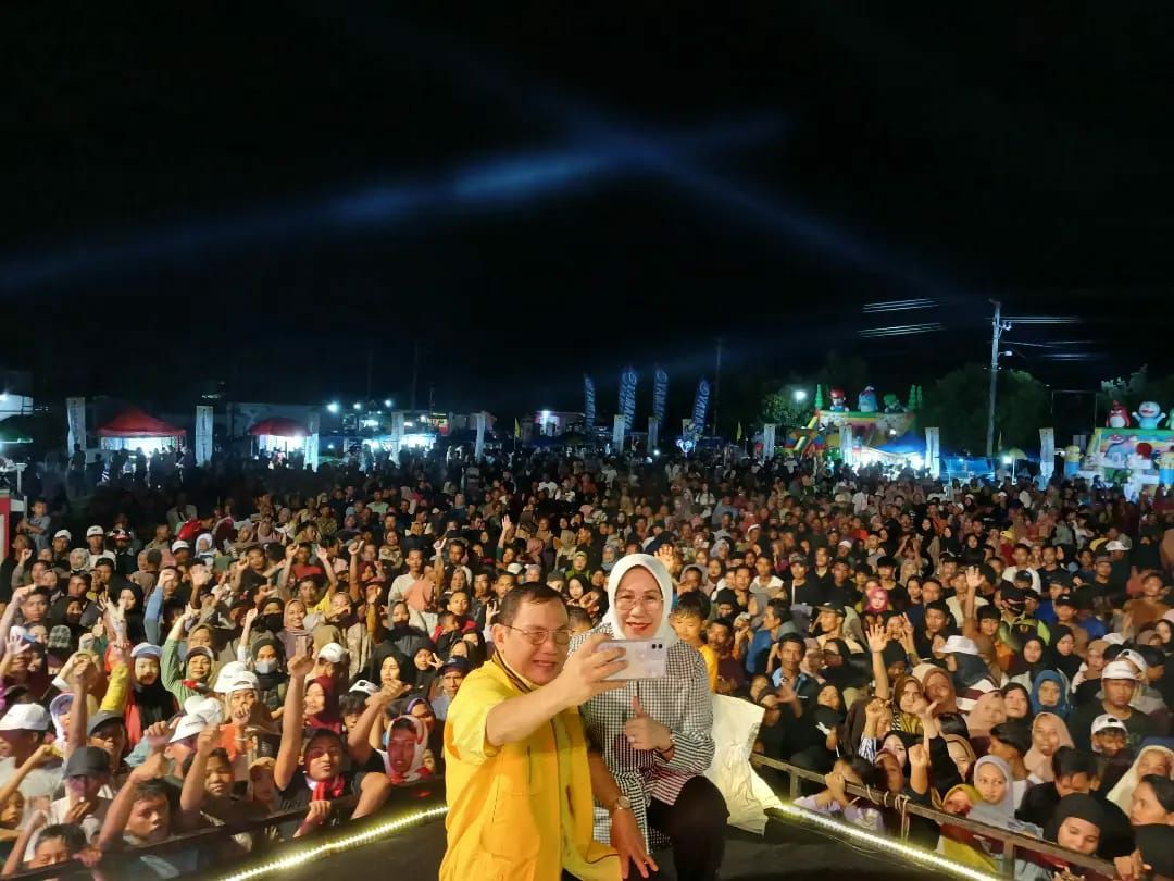 globalcybernews.com -Lampung Tengah | Gelaran konser musik gratis yang bertajuk “Gebyar Lampung Maju” kembali dilaksanakan oleh tim kerja pemenangan Bakal Calon Gubernur (Bacagub) Lampung Ir. H. Hanan A Rozak, MS, kali ini yang dipusatkan di Lapangan Desa Srikaton, Kecamatan Seputih Surabaya, Kabupaten Lampung Tengah, pada Sabtu (08/6/2024) malam.