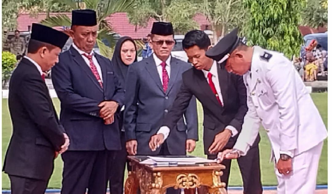 Acara tersebut diawali pengukuhan oleh Pj Bupati Paluta, dilanjutkan penyerahan SK kepada masing-masing kepala desa.