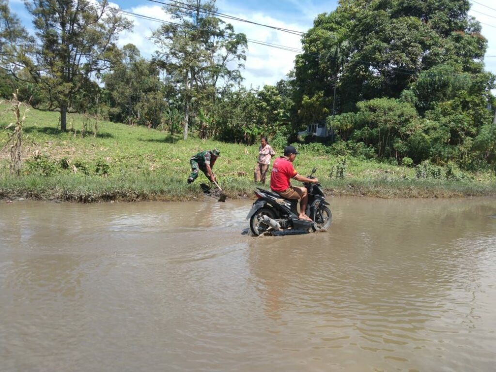 Melihat kondisi ini, Babinsa Ramil 04/Tigalingga, Serka Salpinus Ginting, bersama Kepala Desa Palding, Ikuten Sinulingga, dan Aparatur Pemerintahan Desa Palding berinisiatif menggelar gotong royong untuk mengatasi genangan air di jalan lintas Sidikalang-Tigalingga.