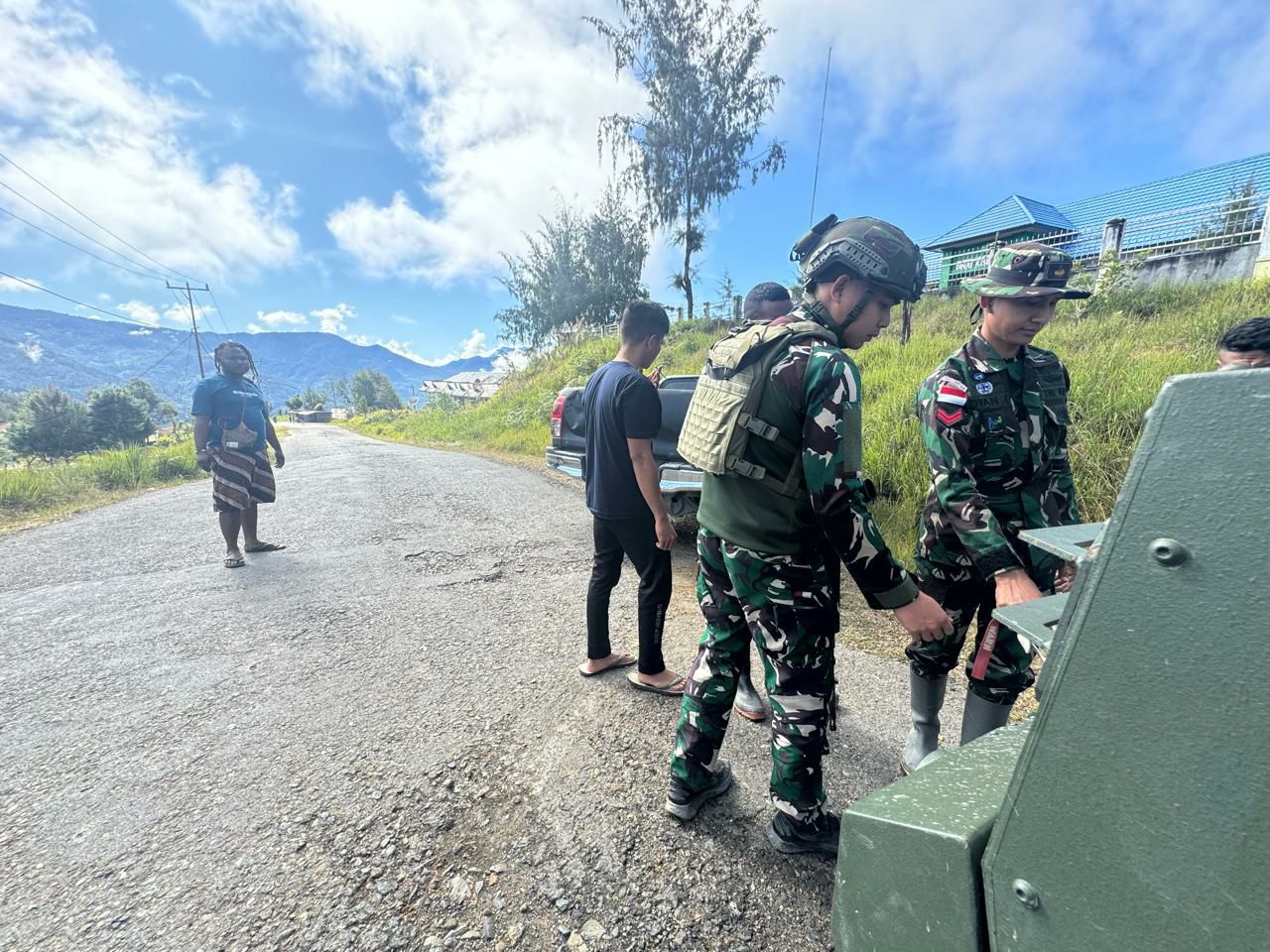 globalcybernews.com -Intan Jaya, PenKoopsHabema – Satuan Tugas Batalyon Infanteri (Satgas Yonif) Raider 509/Balawara Yudha Kostrad, bagian dari Komando Operasi TNI (KOOPS TNI) HABEMA, tengah melaksanakan tugas Operasi Pengamanan Perbatasan (Opspamtas) Mobil RI-PNG, khususnya di wilayah Kabupaten Intan Jaya, Provinsi Papua Tengah. Pada hari Minggu, 30 Juni 2024, terjadi sebuah insiden di dekat Pos Satgas Yonif 509 Kostrad, tepatnya di Kampung Mamba, Distrik Sugapa. Sebuah kendaraan jenis truk pick-up milik warga Mamba terperosok di pinggir jalan raya Kampung Mamba. Dengan sigap dan penuh dedikasi, para prajurit TNI yang berada di pos segera bergerak membantu proses penarikan kendaraan.