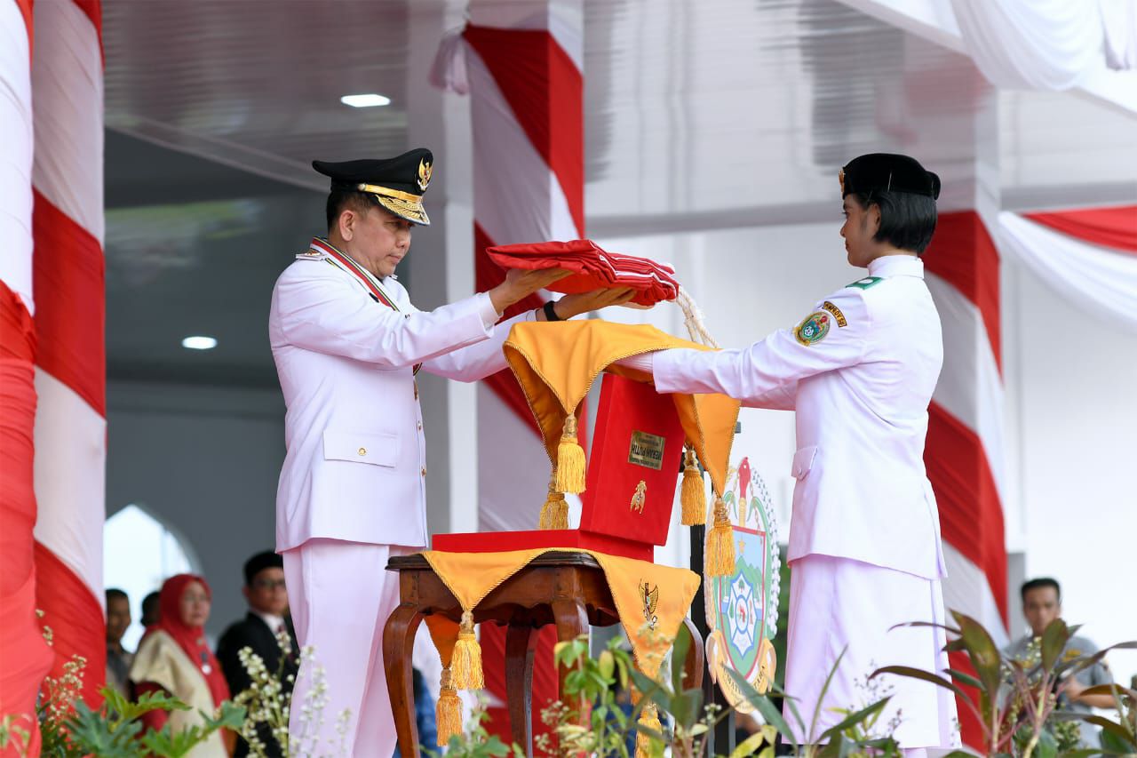 globalcybernews.com-Deli Serdang I Penjabat (Pj) Gubernur Sumatera Utara (Sumut) Agus Fatoni menjadi Inspektur upacara penurunan bendera pada peringatan Hari Ulang Tahun (HUT) ke-79 Republik Indonesia (RI). Kegiatan ini berlangsung di Lapangan Astaka, Jalan Williem Iskandar, Kabupaten Deliserdang, Sumut, Sabtu (17/8/2024).