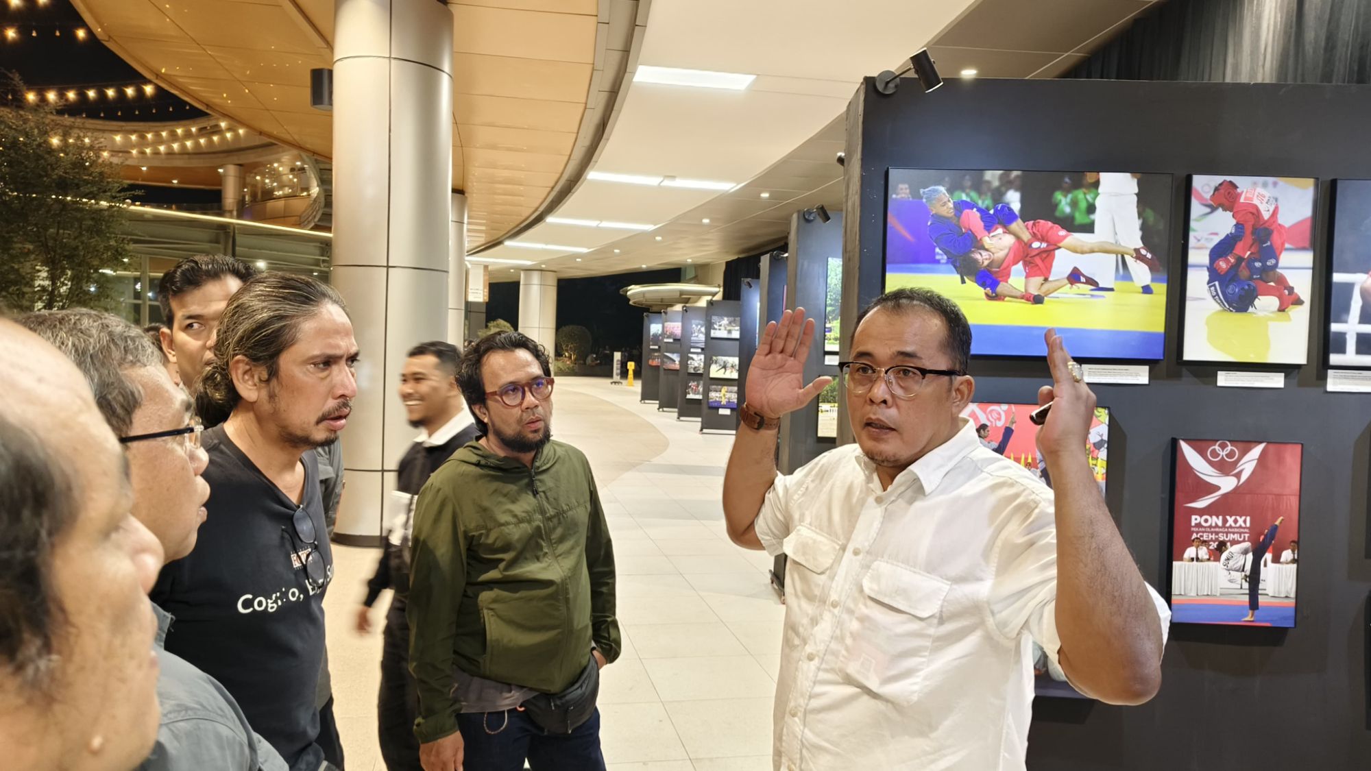 Aulia Rachman menyampaikan apresiasi atas digelarnya pameran foto, sembari mengamati deretan karya foto yang dihasilkan para fotografer ofisial PON XXI Sumut yang tergabung dalam Pewarta Foto Indonesia (PFI) Medan yang merekam visual berbagai kegiatan suksesnya pagelaran PON XXI Aceh-Sumut, terkhususnya di wilayah Sumatera Utara.