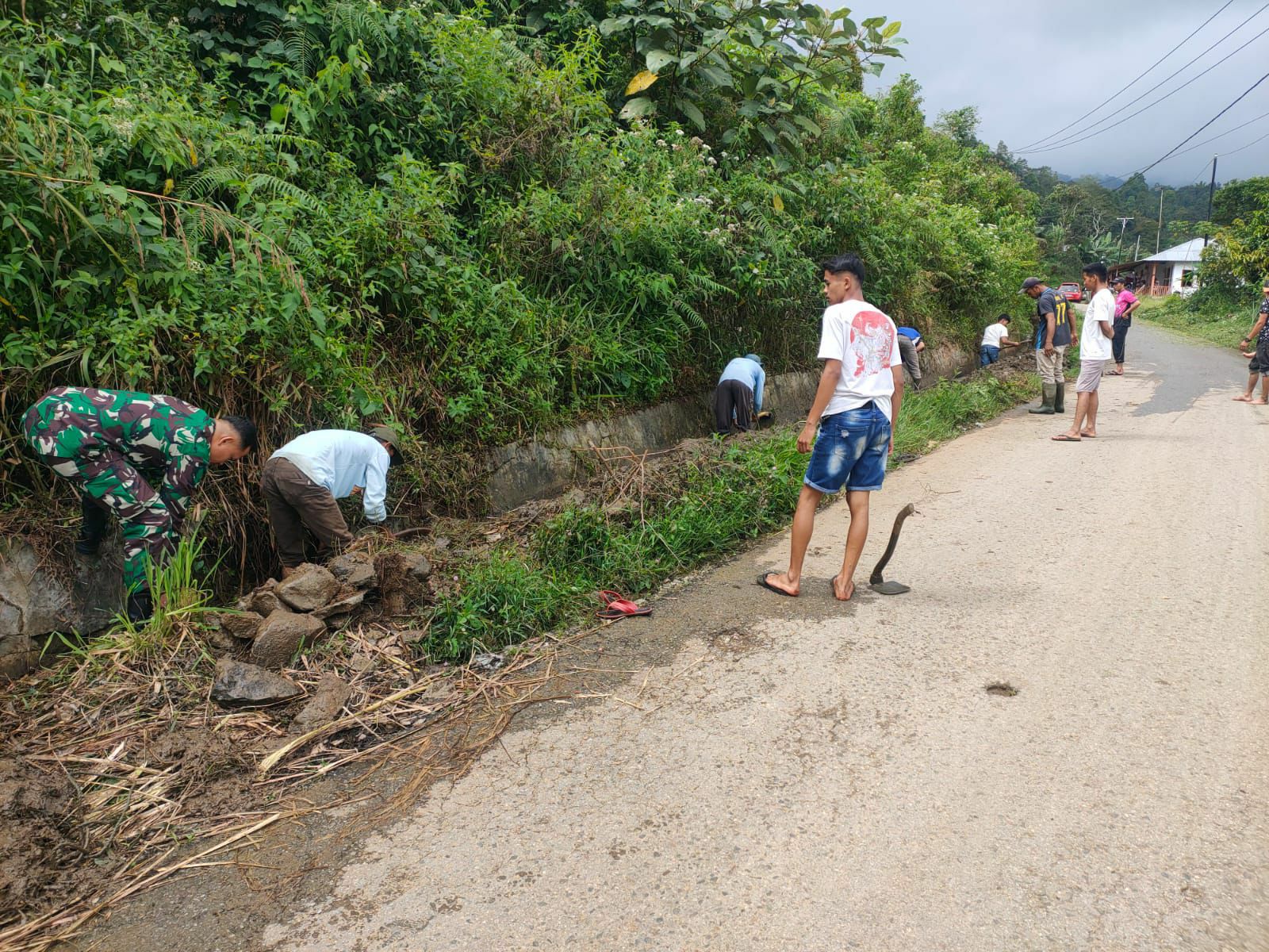 globalcybernews.com ‘-SOLOK_Wujudkan hidup sehat dan eratkan hubungan yang baik dengan warga binaan, Babinsa Koramil 04/Payung Sekaki Kodim 0309/Solok Praka Royal Novrismal bergotong royong membersihkan selokan/parit bersama warga Nagari Sirukam, Kec. Payung Sekaki, Kab. Solok, Jumat (18/10/2024).