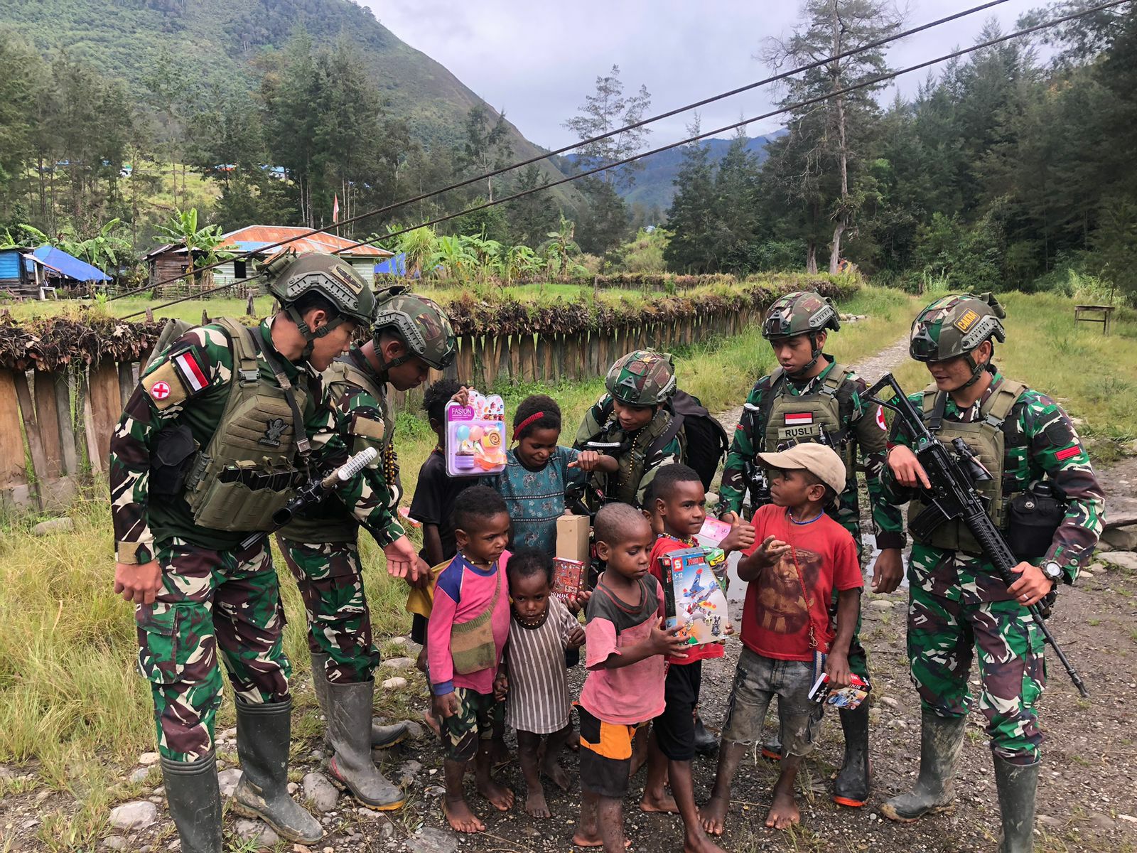[globalcybernews.com – MAYUBERI ] – Prajurit Satgas Yonif 323 Buaya Putih kembali menunjukkan kepeduliannya terhadap masyarakat Papua Tengah dengan membagikan mainan kepada anak-anak di Kampung Mayuberi, Distrik Ilaga Utara, Kabupaten Puncak, Papua Tengah, Kamis (31/10/2024).