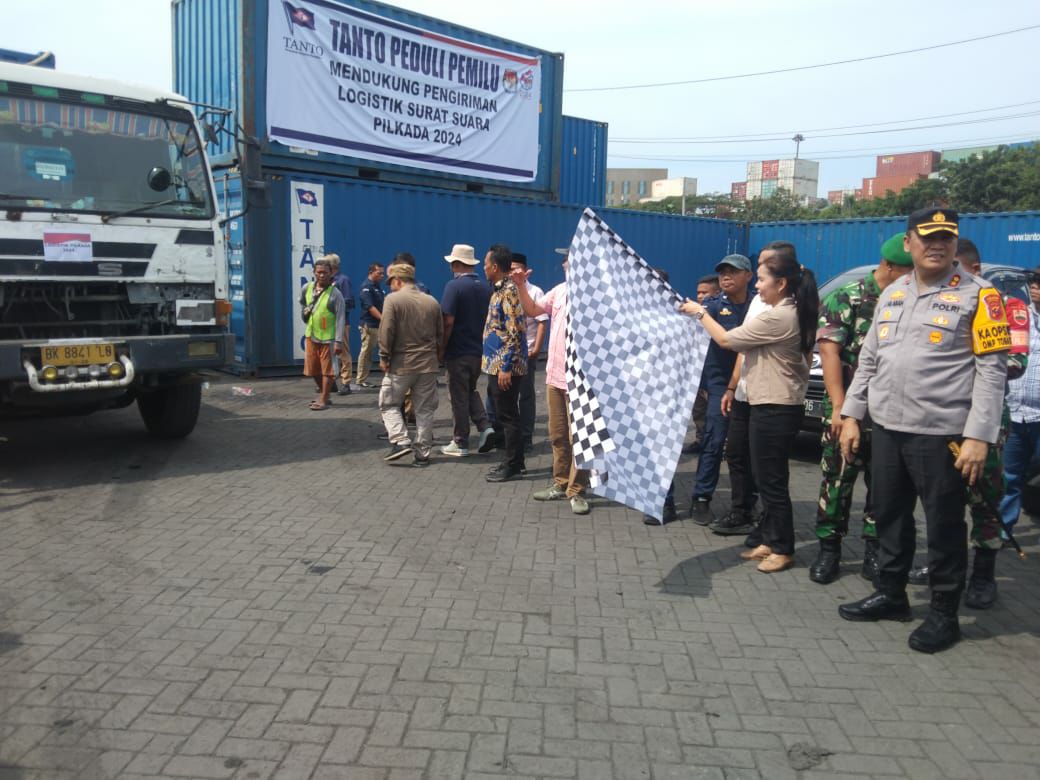 globalcybernewscom -Ketua KPU Medan Mutia Atiqah Menerima logistik Surat Suara Dari KPU Sumut,Untuk Pemilihan Serentak Kepala Daerah (Pilkada) Gubernur dan Wakil Gubernur, Bupati dan Wakil Bupati dan Walikota dan Wakil Walikota tahun 2024, di Depot Countener Pelabuhan Belawan Medan, dan selanjutnya dibawa menuju Gudang KPU Medan di Jalan Rumah Potong Hewan, Kelurahan Mabar, Kecamatan Labuhan, Kota Medan, Selasa 29 Oktober 2024.