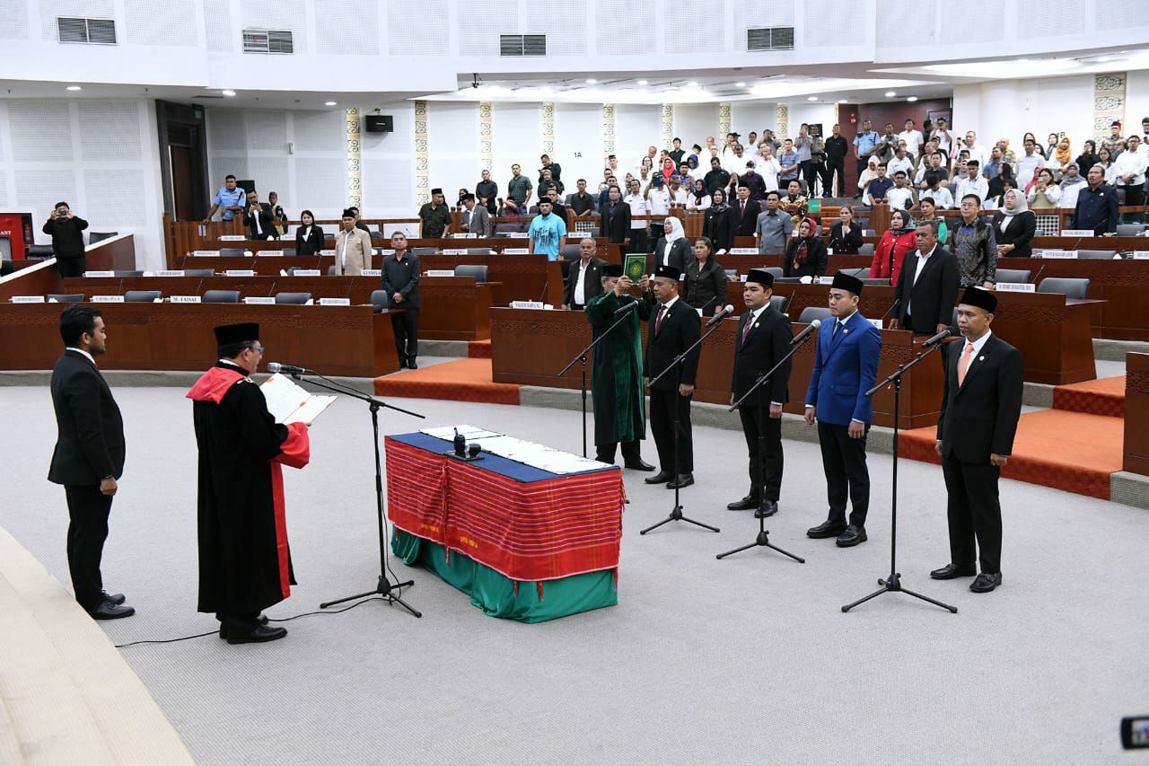 Disampaikan juga, bahwa Gubernur sebagai wakil pemerintah pusat telah melaksanakan tugas tahapan pengusulan calon pimpinan melalui rapat paripurna istimewa untuk diusulkan ke Menteri Dalam Negeri dan telah ditetapkan. Dengan demikian, pengambilan sumpah dan janji menjadi simbol kepercayaan sekaligus tanggung jawab besar pimpinan dewan, dimana harapannya menjadi jembatan antara pemerintah daerah dan masyarakat, serta mampu menyuarakan aspirasi dalam setiap kebijakan yang diambil.