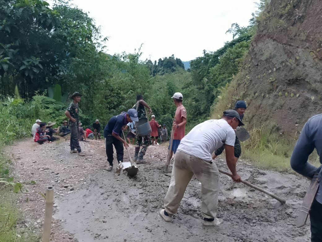 “Prajurit di Pos Guntembawang bergotong-royong bersama masyarakat untuk memperbaiki kondisi jalan rusak tersebut,” ujarnya.