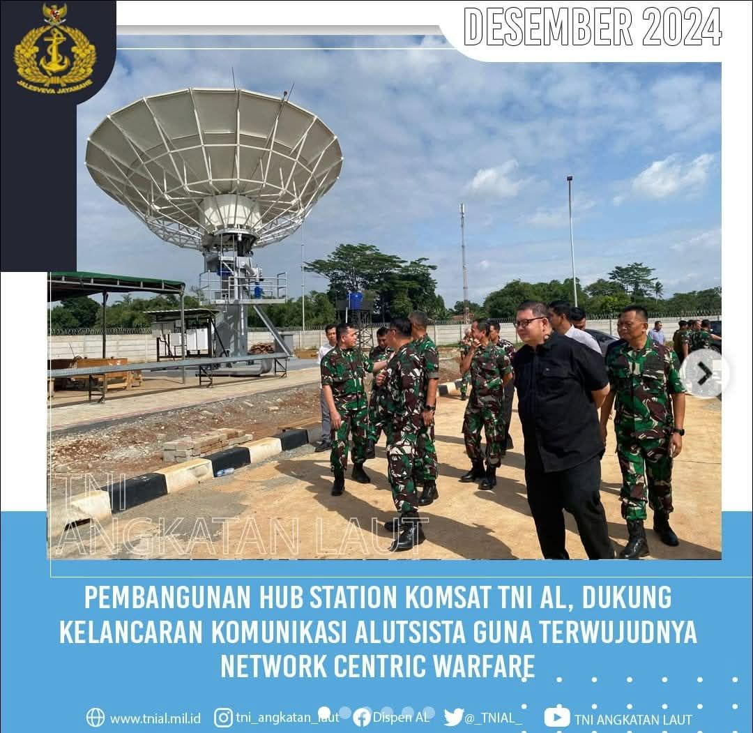 GlobalCyberNews.Com -Untuk meningkatkan kemampuan di bidang Komunikasi Satelit, TNI AL dalam hal ini Dinas Komunikasi dan Elektronika Angkatan Laut (Diskomlekal) membangun Hub Station Komsat TNI AL di Pasir Angin, Gunung Putri Kabupaten Bogor, Jumat (13/12/2024).