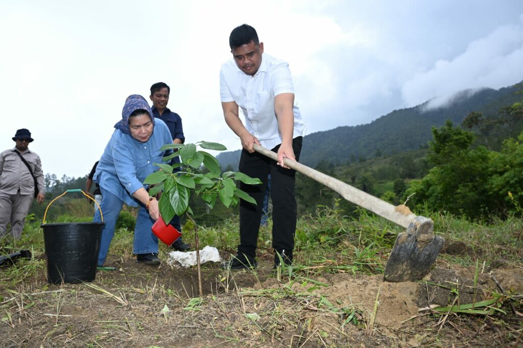 Sebelum beranjak, Bobby Nasution menanam pohon mangga di kawasan perhutanan sosial yang dikelola masyarakat. Langkah ini juga sebagai simbol penanaman ribuan pohon oleh Kelompok Tani Hutan (KTH).