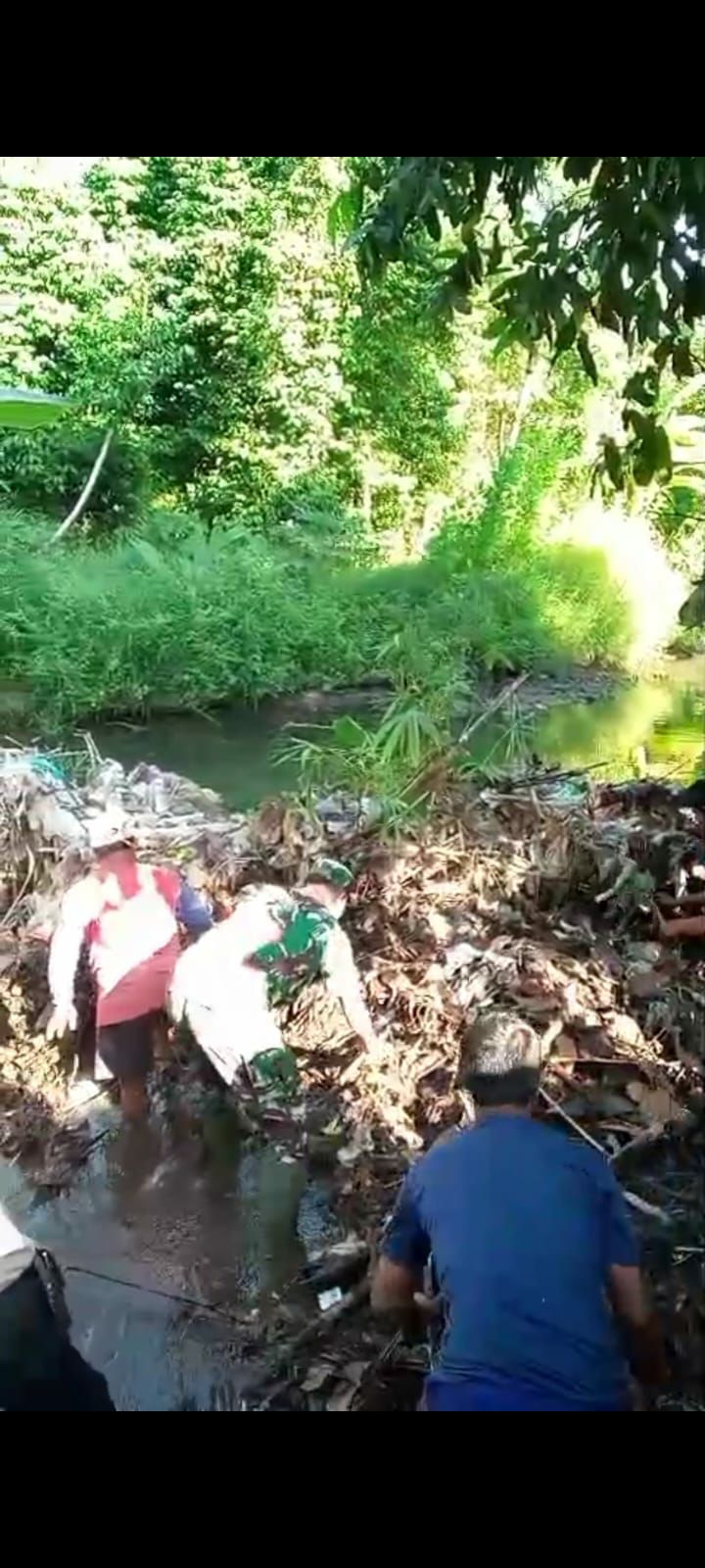 GlobalCyberNews.Com  -Boyolali. Lima (5) Anggota Koramil 09/Sawit Kodim 0724/Boyolali yang dipimpin Danramil 09/Sawit Kapten Inf Suparman bersama warga bergotong royong membersihkan sungai di Desa Jatirejo Kecamatan Sawit Kabupaten Boyolali. Minggu ( 06/04/25)