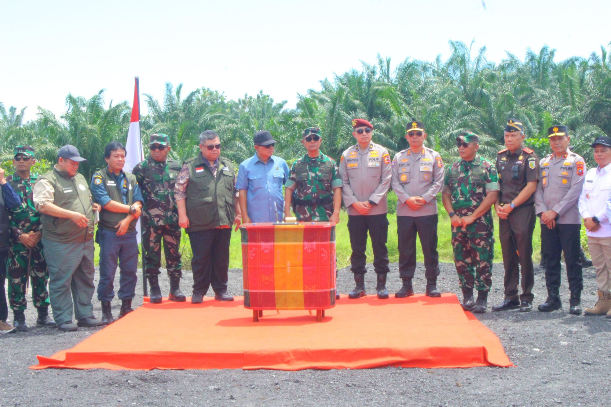 Di Lapangan Bola PT Torganda, Kasum TNI menerima paparan dari Wadan Satgas PKH, Brigjen TNI Doddy Tri Winarto, terkait peta lahan seluas kurang lebih 47.000 hektare yang akan diserahkan kepada Satgas PKH.