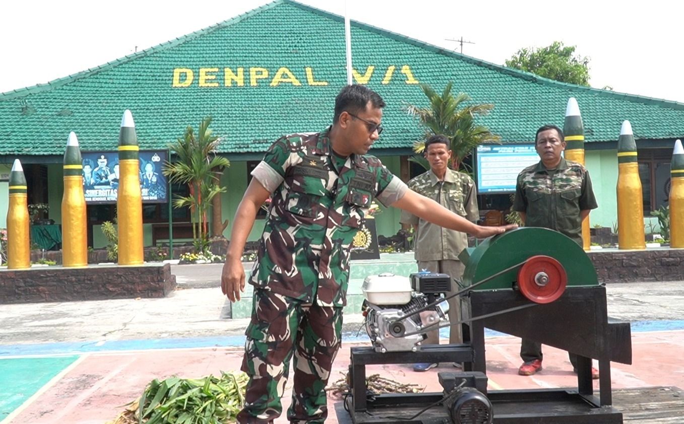 Global Cyber News.Com. -Madiun, – Melalui inovasi dan kreativitasnya, Denpal V/1 Madiun berhasil membuat mesin pencacah pakan ternak berkemampuan tinggi. Bahkan kemampuannya dua kali lipat lebih dari produk serupa yang banyak dijual di pasaran.