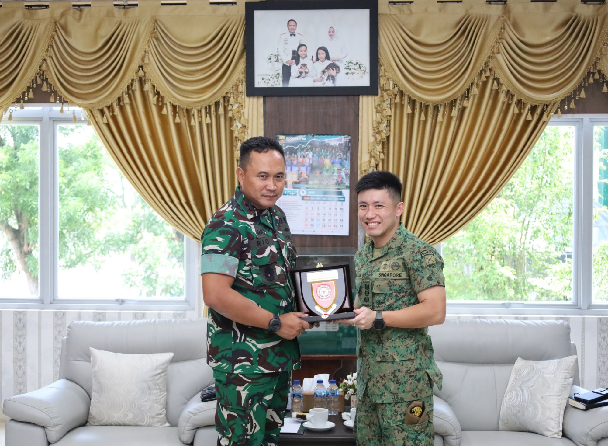 Global Cyber News.Com. -Medan – Panglima Kodam I/Bukit Barisan, Mayjen TNI Rio Firdianto, menerima kunjungan kehormatan Atase Darat Singapura di Jakarta, Kolonel Stanley Lim, didampingi ME3 Mandy Tham, di Ruang Tamu Pangdam Lt II Makodam I/BB, Medan, Jumat (2/5/2025).