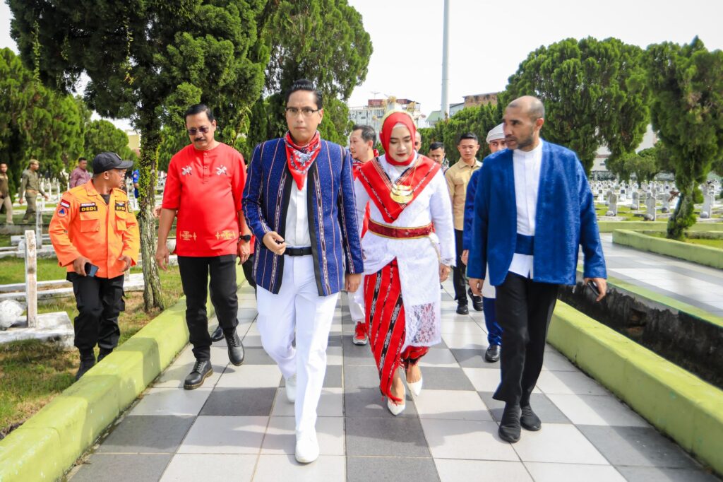 Global Cyber news.Com. -Menggunakan pakaian khas Maluku, Baju Baniang dengan Kabaya Dansa yang dilengkapi Kain Berang, Wali Kota Medan Rico Tri Putra Bayu Waas memimpin upacara ziarah rombongan dalam rangka peringatan Hari Pahlawan Nasional Kapitan Pattimura ke -208 tingkat Kota Medan di makam Pahlawan, jalan Sisingamangaraja, Kamis (15/3/25).