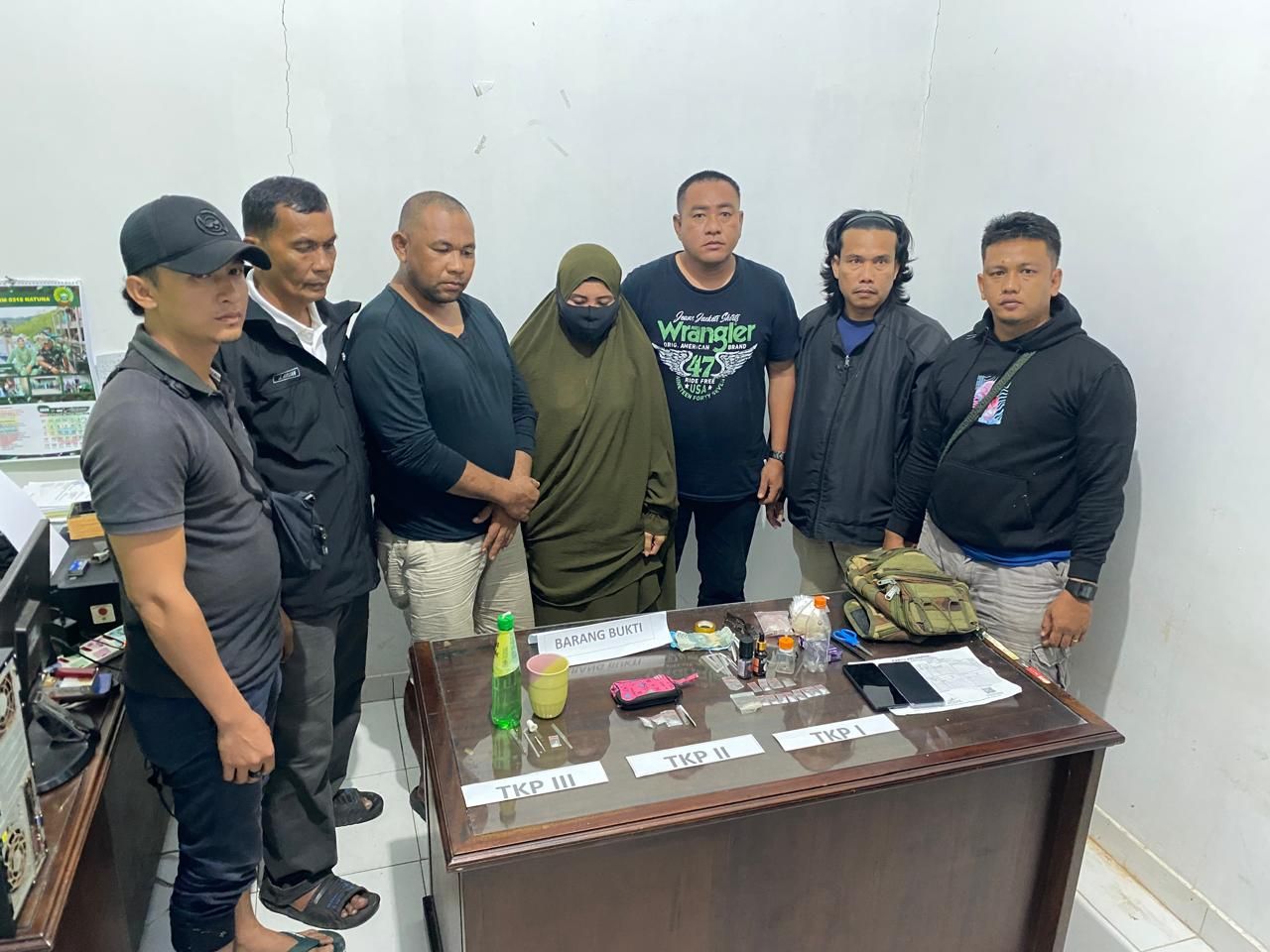 Maka Tim yang sudah disiapkan pada pukul 19.30 WIB langsung melakukan penyekatan di lokasi dan penggeledahan. Dua tersangka berhasil diamankan, masing-masing Sw (42, IRT), warga Batu Kapal, RT 003/RW 007, Kelurahan Ranai Kota dan YP (42, Wiraswasta) warga jln. Hasan Ramli, RT 03/RW 06, Kelurahan Ranai Kota