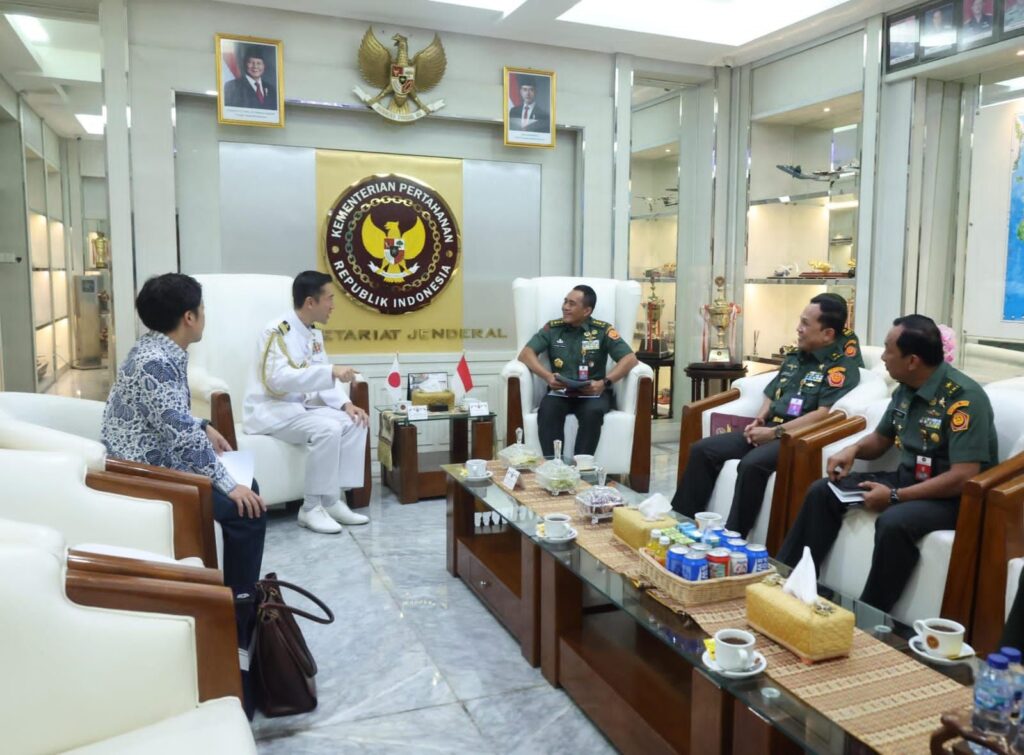 GlobalCyberNews.Com. – Jakarta — Sekretaris Jenderal Kementerian Pertahanan (Sekjen Kemhan) Letjen TNI Tri Budi Utomo menerima courtesy call Athan Jepang Capt (N) Hamakawa Sho, di ruang tamu Sekjen Kemhan. Selasa, (20/5/2025).