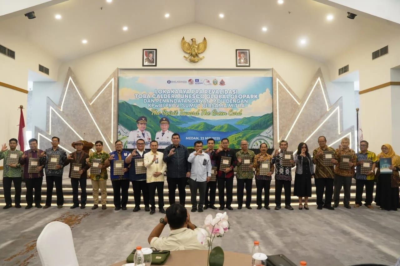 GlobalCyberNews.Com. -Medan I Badan Pengelola Toba Caldera UNESCO Global Geopark (Toba Caldera UGGp) bersama dengan Kantor Perwakilan Bank Indonesia Provinsi Sumatera Utara menggelar Lokakarya Pra Revalidasi UNESCO dan penandatanganan komitmen pembangunan berkelanjutan di kawasan Danau Toba pada 22 Mei 2025.