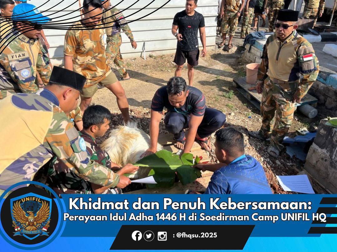“Hari Raya Idul Adha bukan hanya menjadi momen ibadah, tetapi juga momentum untuk memperkuat tali persaudaraan, baik di antara sesama personel Satgas maupun dengan masyarakat lokal. Semangat berbagi dan pengorbanan yang menjadi esensi Idul Adha sangat relevan dengan tugas mulia kita sebagai pasukan perdamaian di bawah PBB. Saya bangga seluruh rangkaian kegiatan dapat berjalan tertib, aman, dan mencerminkan profesionalisme serta kedewasaan spiritual seluruh personel,” ungkap beliau.