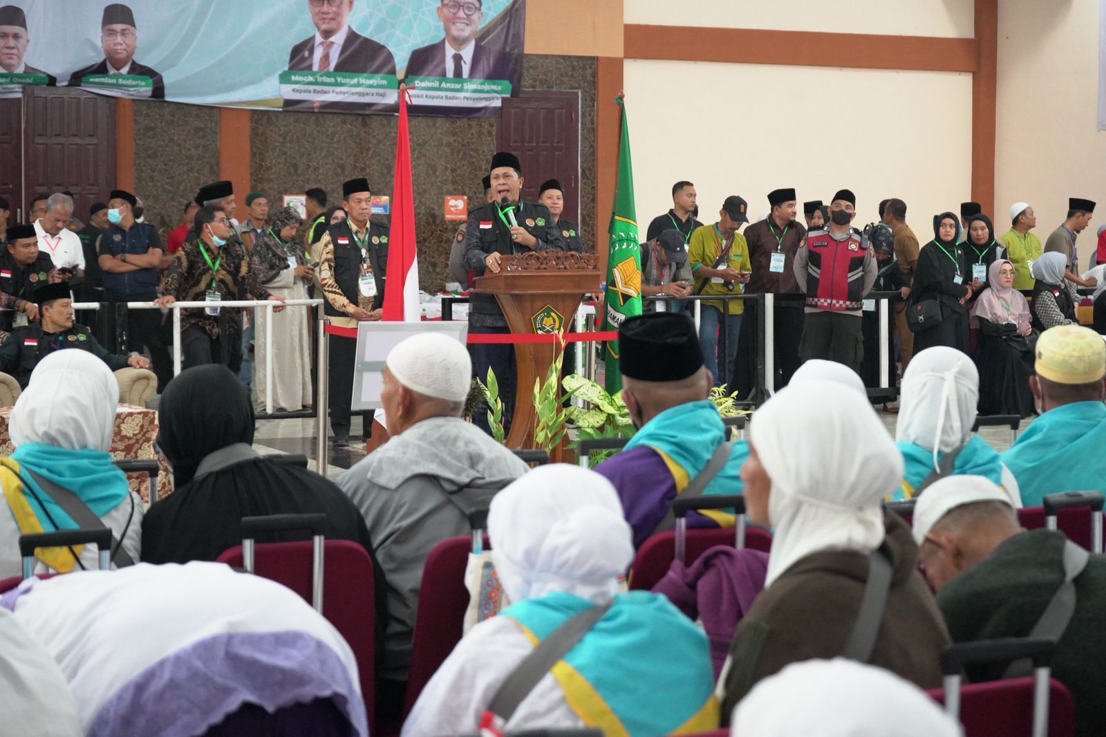 Ketua PPIH Debarkasi Medan Ahmad Qosbi saat menyambut jemaah haji di Aula Madinatul Hujjaj mengucapkan selamat datang, selamat kembali ke tanah air dan bersyukur jemaah haji tiba dalam keadaan sehat wal afiat serta mendoakan jemaah haji meraih predikat haji mabrur.