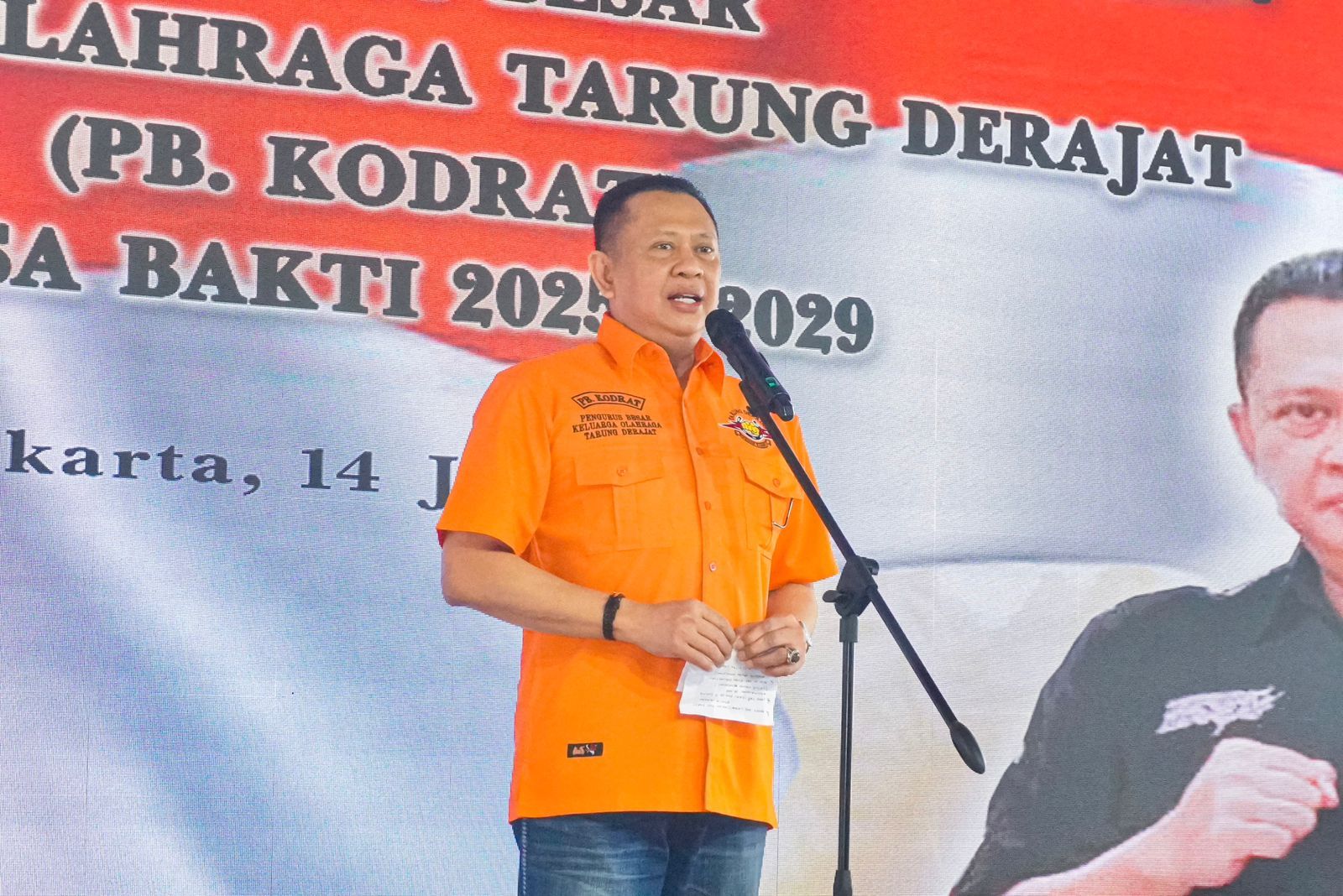 Global Cyber News.Com. –JAKARTA – Anggota DPR RI sekaligus Ketua Umum Pengurus Besar Keluarga Olahraga Tarung Derajat (PB Kodrat) Bambang Soesatyo menuturkan pelantikan Pengurus Besar Keluarga Olahraga Tarung Derajat (PB Kodrat) periode 2025-2029 dengan formasi Ketua Dewan Pembina Jenderal Pol (P) Budi Gunawan dan Ketua Dewan Penasehat Jenderal TNI AD (P) Dudung Abdurachman serta Ketua Harian Brigjen Pol. Putu Putera Sadana dan Sekjen Brigjen TNI AD Asep Sugiharto oleh Ketua Umum KONI Pusat menjadi momentum penting dalam perjalanan olahraga bela diri asli Indonesia ini. Tarung Derajat yang mengedepankan filosofi “Aku Ramah Bukan Berarti Takut, Aku Tunduk Bukan Berarti Takluk”, bukan sekadar sebuah cabang olahraga, tetapi juga merupakan cerminan dari karakter dan budaya bangsa. Dengan adanya kepengurusan yang baru, diharapkan Tarung Derajat dapat meningkatkan prestasi serta mempertahankan dan memperkuat identitasnya sebagai seni bela diri yang khas dari Indonesia.