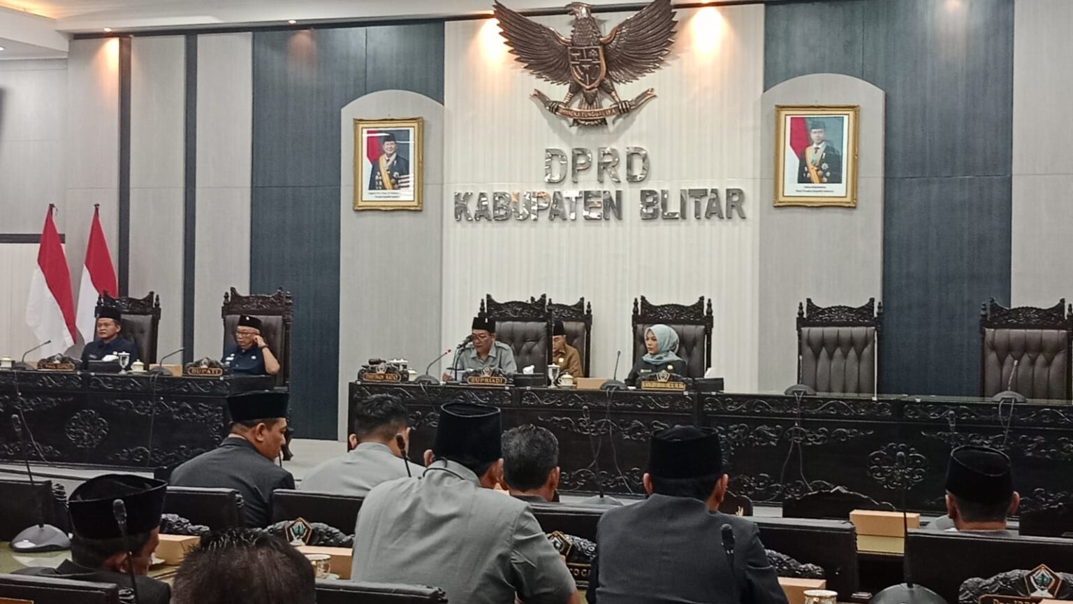 Rapat yang berlangsung di Graha Paripurna DPRD Kabupaten Blitar ini dipimpin oleh Ketua DPRD Supriadi, didampingi Wakil Ketua II Hj. Ratna Dewi N.S., S.S., S.H., M.Kn. Turut hadir Bupati Blitar Drs. H. Rijanto, M.M., Wakil Bupati H. Beky Herdihansah, jajaran Forum Koordinasi Pimpinan Daerah (Forkopimda), Sekretaris Daerah, kepala OPD, serta anggota DPRD Kabupaten Blitar.