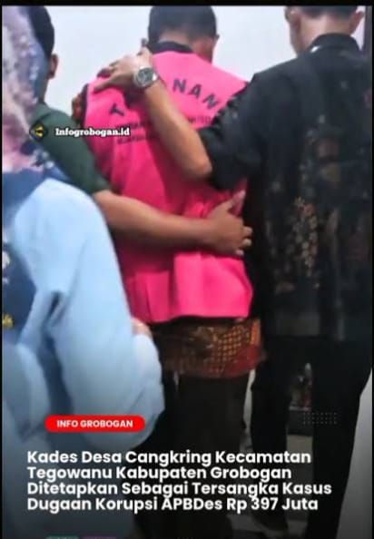 Global Cyber News.Com. -Jateng GROBOGAN — MA Seorang oknum Kepala Desa Cangkring, Kecamatan Tegowanu, Grobogan, Jawa Tengah ditetapkan sebagai tersangka oleh Kejaksaan Negeri Grobogan Jateng, Tersangka ditahan atas dugaan kasus korupsi pengelolaan dana APBDes Desa Cangkring selama enam tahun, terhitung mulai tahun (2019 hingga 2024).