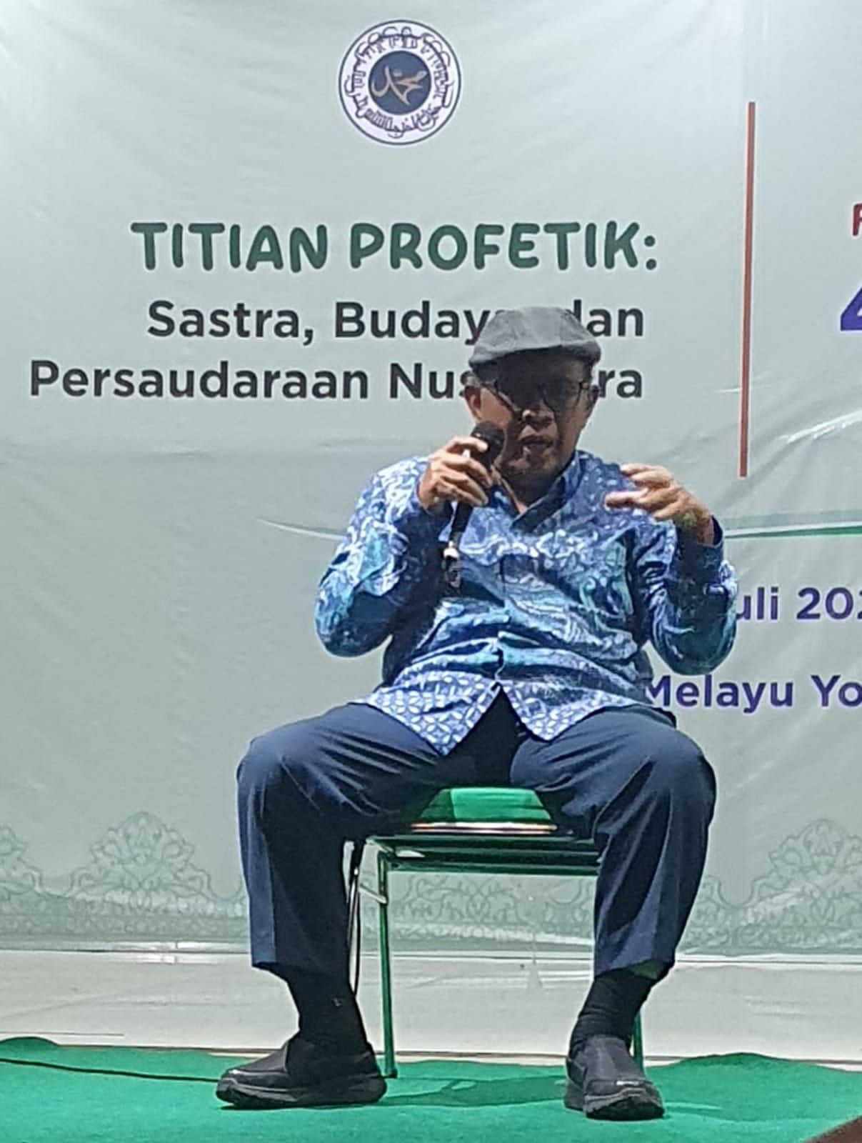 Global Cyber News. Com.  -Acara “Titian Profetik : Sastra, Budaya dan Persaudaraan Nusantara” diselenggarakan Balai Kajian dan Pengembangan Budaya Melayu dan Kosbatik merupakan momentum berharga bagi pegiat sastra dan budaya. Karena acara ini tidak hanya meluncurkan 4 buku terbaru, tapi juga menjadi wadah bagi tokoh sastra dan budaya di Yogyakarta untuk berbagi testimoni dan orasi tentang peran sastra dan budaya dalam memperkokoh nilai-nilai kemanusiaan dan spiritualitas. Demikian ungkap Prof. Dr (HC) Drs. KH. Habib Khirzin melalui pekabaran beliau Kamis, 3 Juli 2025 dari kawasan Bukit Menoreh, Muntilan, Magelang, Jawa Tengah.