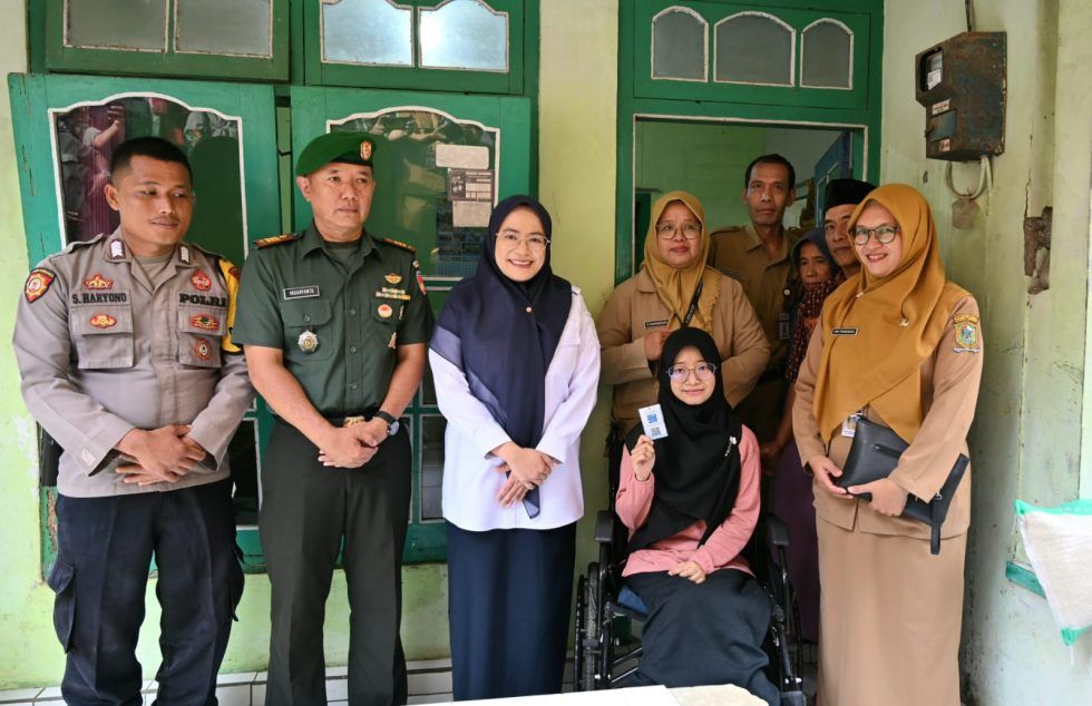 Kartu disabilitas secara simbolis diserahkan oleh Bupati Banjarnegara, dr. Amalia Desiana, kepada Dwi Retno Anggraini, penyandang disabilitas di rumahnya, Jalan Gelatik RT 02 RW 02, Kelurahan Parakancanggah, Kecamatan Banjarnegara Kabupaten Banjarnegara Jateng.