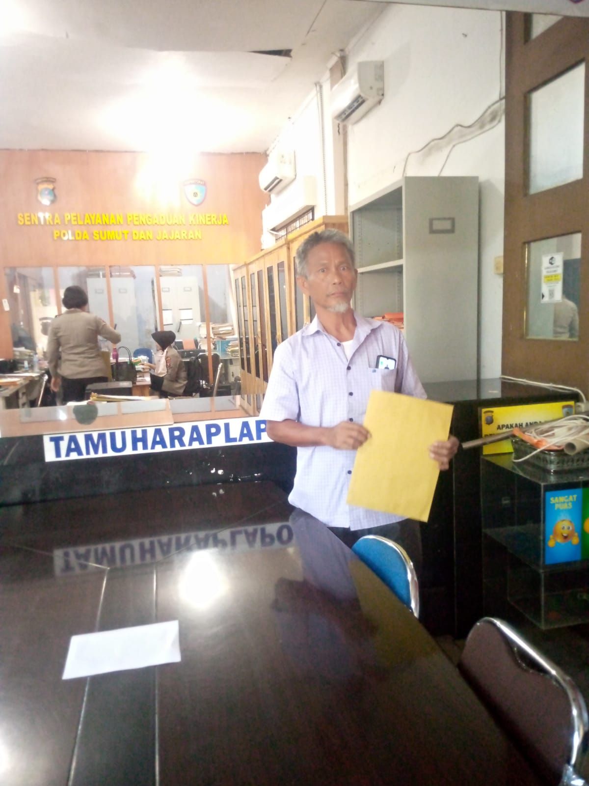 Surat Dumas Saiful Bahri yang ditujukan untuk Kapolda Sumut Irjen Whisnu Hermawan Februanto diterima oleh bagian Sekretariat Umum (Setum). “Nanti kita sampaikan surat Dumas dan flashdisk abang ini kepada pak Kapolda Sumut ya bang” kata seorang Polwan yang bertugas dibagian Sekretariat Umum (Setum).