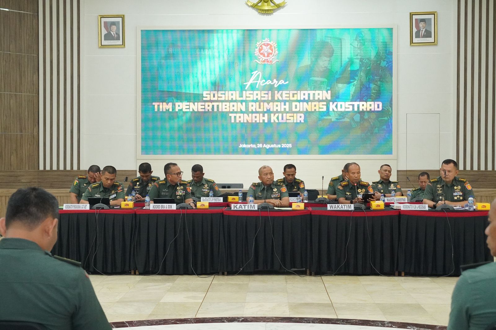 Global CyberNews.Com. -Jakarta. Komando Cadangan Strategis Angkatan Darat (Kostrad) melaksanakan kegiatan Sosialisasi dan Rapat Koordinasi terkait penertiban rumah dinas di Komplek Kostrad Tanah Kusir, Jakarta Selatan. Acara ini digelar di Aula Mandala Lantai 2, Markas Kostrad Jakarta Pusat, mulai pukul 09.00 WIB, dipimpin langsung oleh Aslog Kaskostrad, Brigjen TNI Esy Suharto selaku Ketua Tim Penertiban Rumah Dinas Kostrad.