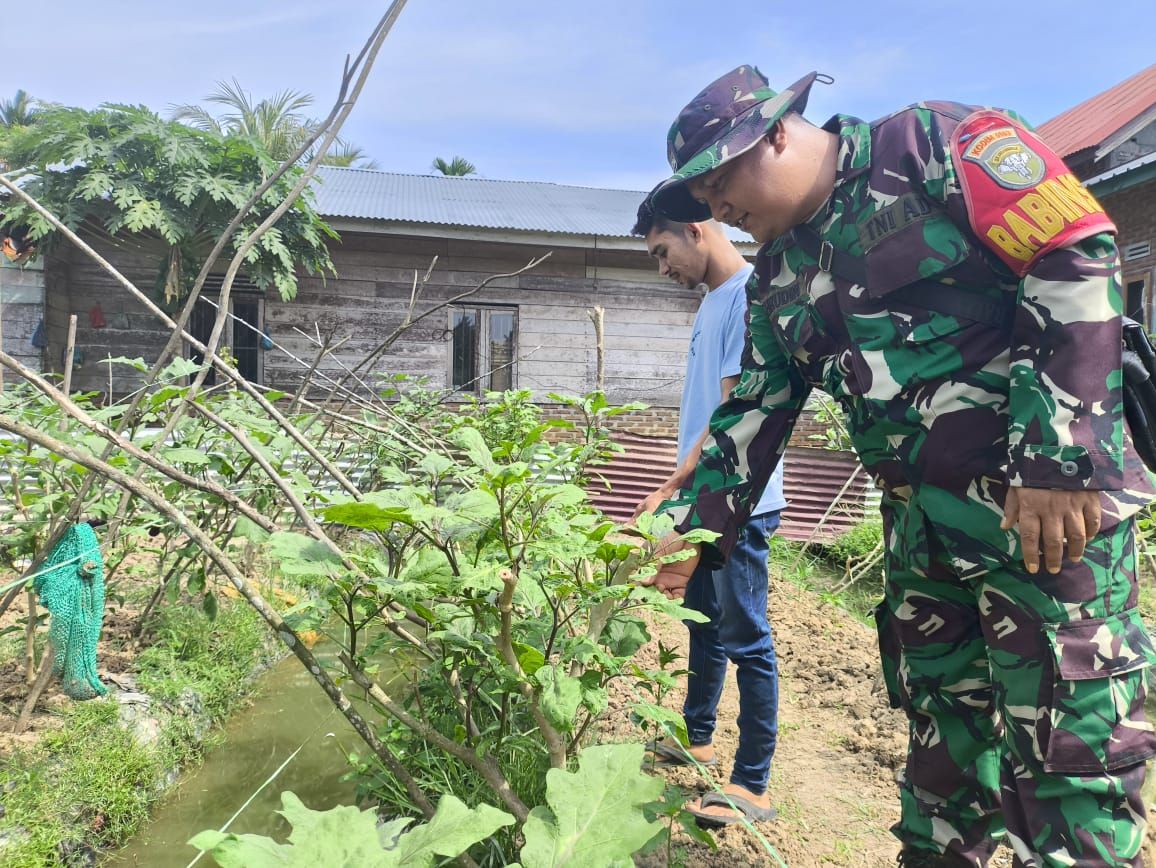 Pendampingan yang dilakukan oleh Babinsa tidak hanya sebatas kunjungan formal, melainkan juga sebuah dialog aktif untuk mengidentifikasi tantangan dan kebutuhan yang dihadapi petani. Serda Fakhrudin secara teliti memeriksa pertumbuhan tanaman terong, memastikan tidak ada hama atau penyakit yang dapat mengganggu hasil panen. Ia juga memberikan masukan praktis terkait cara perawatan dan pemupukan yang efektif, sehingga hasil panen dapat maksimal. Kehadiran Babinsa di tengah-tengah petani ini memberikan semangat baru dan rasa aman bagi warga dalam menjalankan aktivitas pertanian mereka.