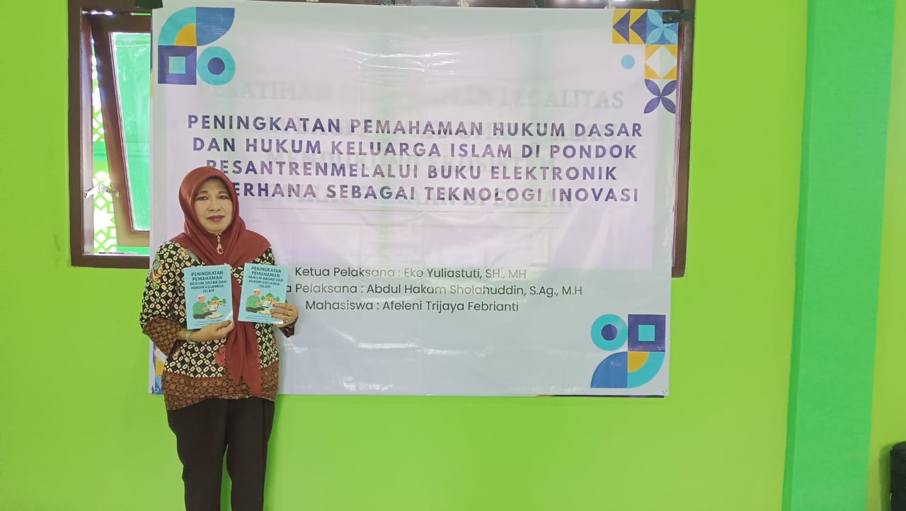 Dalam penyampaiannya, Eko Yuliastuti menegaskan pentingnya inovasi media pembelajaran berbasis digital bagi santri. “Santri perlu mendapat akses materi hukum yang lebih mudah dan modern. Melalui buku elektronik sederhana, pembelajaran hukum Islam bisa dilakukan secara praktis tanpa harus terbatas pada buku cetak,” ujarnya.