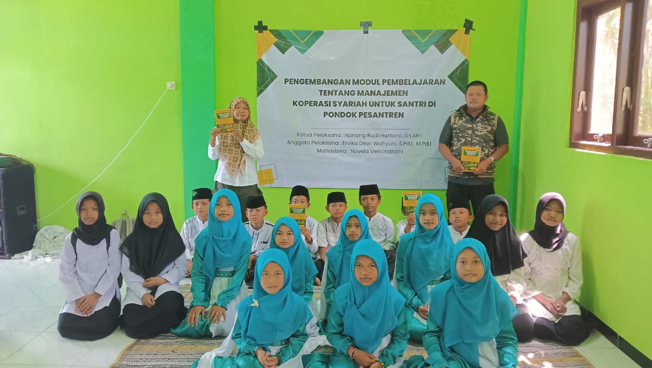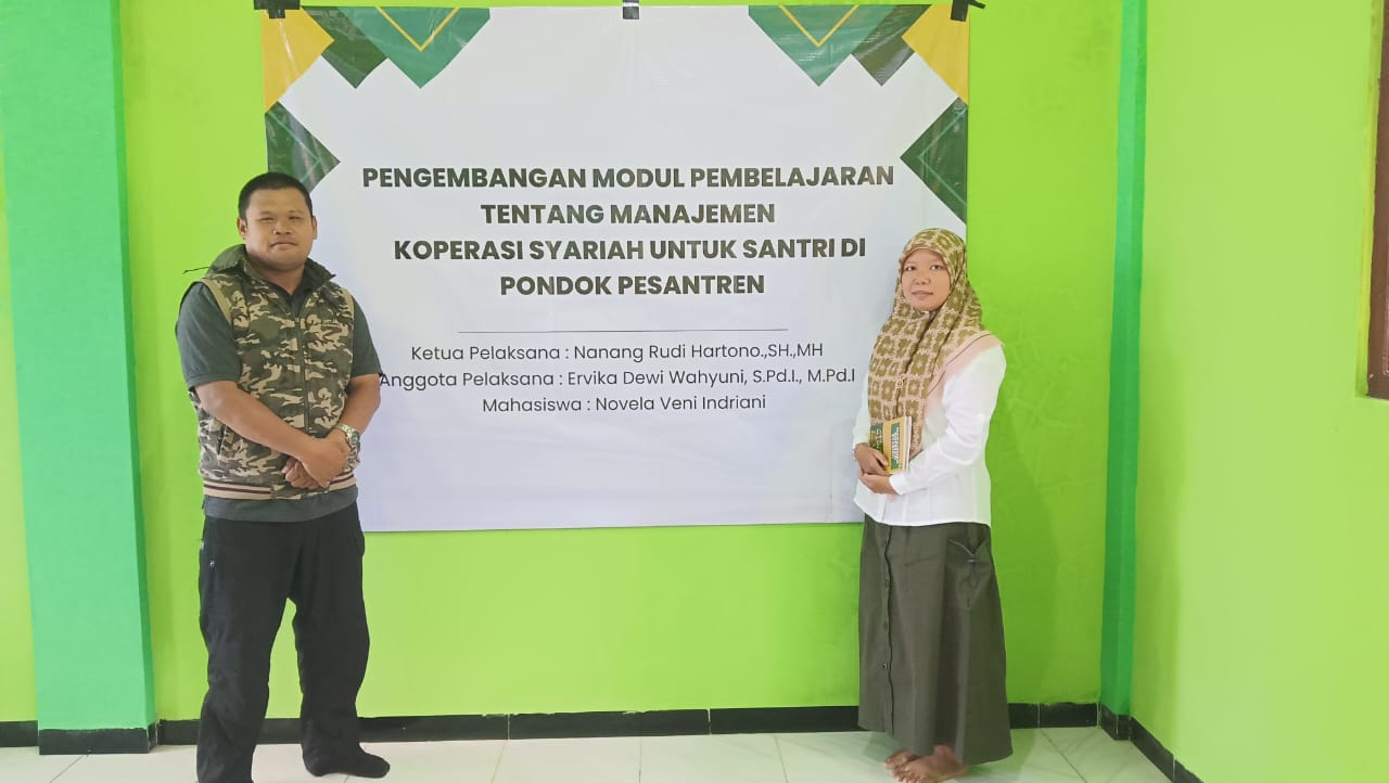 Program ini dipimpin oleh Nanang Rudi Hartono, S.H., M.H. sebagai ketua pelaksana, dengan dukungan anggota tim Ervika Dewi Wahyuni, S.Pd.I., M.Pd.I., serta mahasiswa pendamping Novela Veni Indriani. Tujuan utama kegiatan ini adalah meningkatkan literasi dan keterampilan santri dalam bidang manajemen koperasi syariah sebagai upaya menumbuhkan kemandirian ekonomi pesantren.