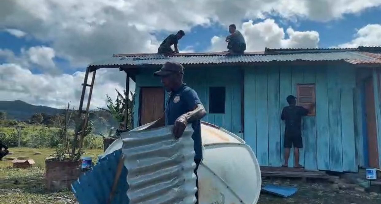 Rumah sederhana yang selama ini menjadi tempat berlindung bagi keluarga Bapak Amos kondisinya sudah sangat memprihatinkan. Dinding kayu banyak yang telah lapuk, atap bocor saat hujan turun, serta pintu dan plafon sudah tidak layak pakai. Melihat kondisi tersebut, prajurit Yonif 751/VJS dengan penuh inisiatif dan ketulusan turun langsung untuk membantu merenovasi rumah tersebut tanpa mengharap imbalan.