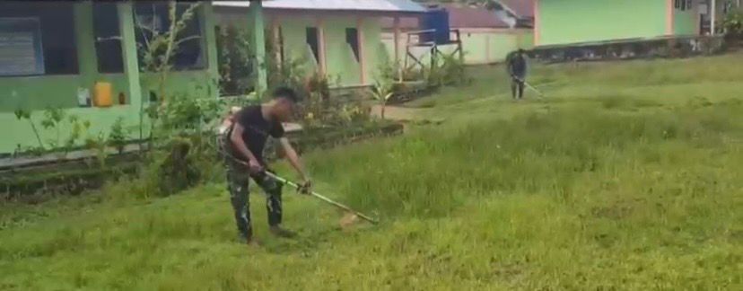 Global Cyber News.Com. -Tambrauw – Pos Satgas TNI Bamusbama bersama masyarakat kembali melaksanakan kegiatan sosial di wilayah binaannya. Kali ini, para prajurit bersama warga bergotong royong membersihkan rumput yang telah panjang di SD Negeri 82 Bamusbama, sebuah sekolah terpencil yang menjadi tempat belajar anak-anak di distrik Bamusbama, Kabupaten Tambrauw, Papua Barat Daya. (23/9/2025).