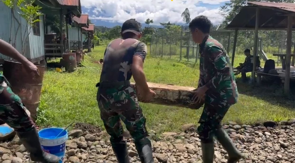 Kepedulian terhadap masyarakat di wilayah perbatasan kembali diwujudkan oleh prajurit Pos Selal Satgas Pamtas RI–PNG Yonif 751/Vira Jaya Sakti (VJS) melalui aksi renovasi rumah milik Bapak Ignasius Jamki, warga Kampung Beringin, Distrik Kalomdol. Kegiatan ini dilaksanakan dengan penuh semangat kebersamaan dan ketulusan. (Rabu, 24/09/2025)