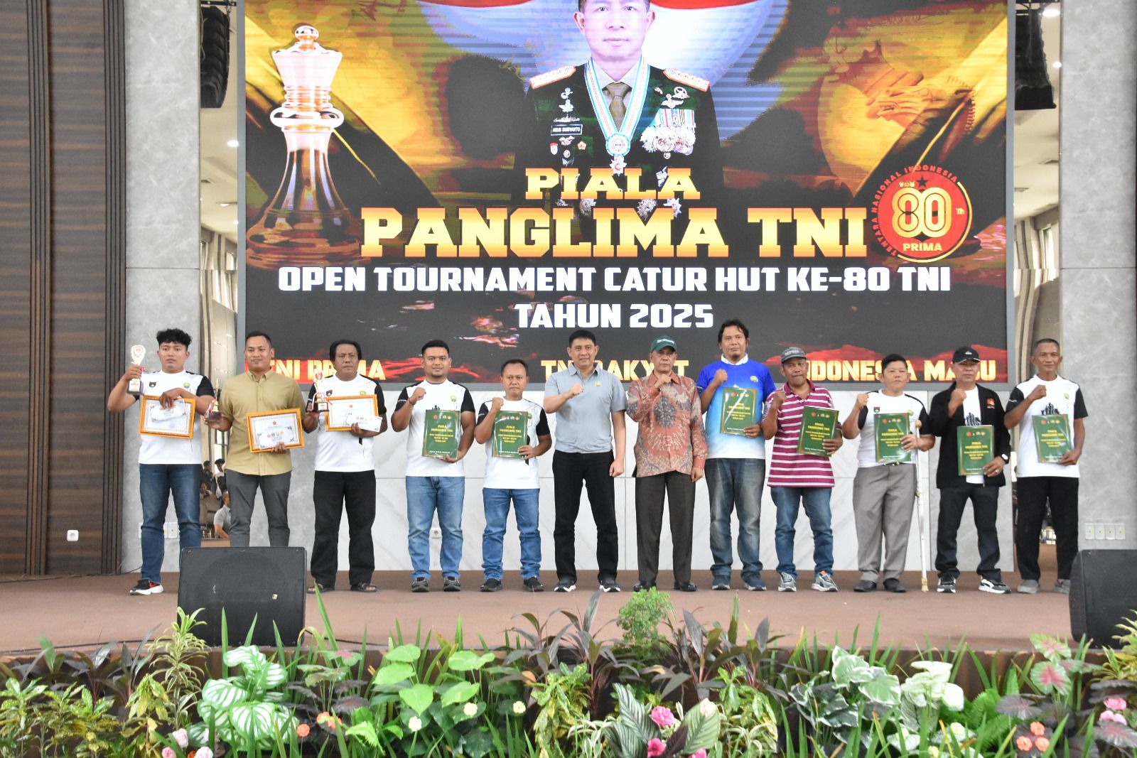 ‎Penutupan Open Tournament Catur HUT ke-80 TNI ini ditandai dengan penyerahan hadiah kepada para juara serta sesi foto bersama, yang semakin mempererat suasana kebersamaan antara TNI dan masyarakat.