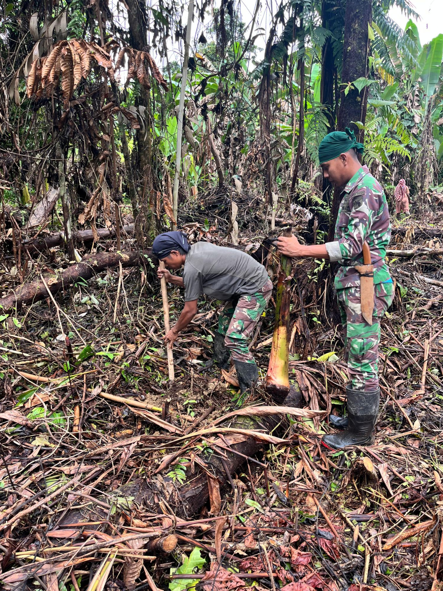 Aksi tanam pisang dilakukan di lahan bersama yang disiapkan warga, dengan tujuan memperkuat ketahanan pangan keluarga, membuka peluang ekonomi hasil panen, sekaligus menjaga tutupan hijau kampung. Prajurit dan warga bahu-membahu mulai dari pembukaan lahan, penggalian lubang tanam, penempatan bibit, hingga pemupukan awal.