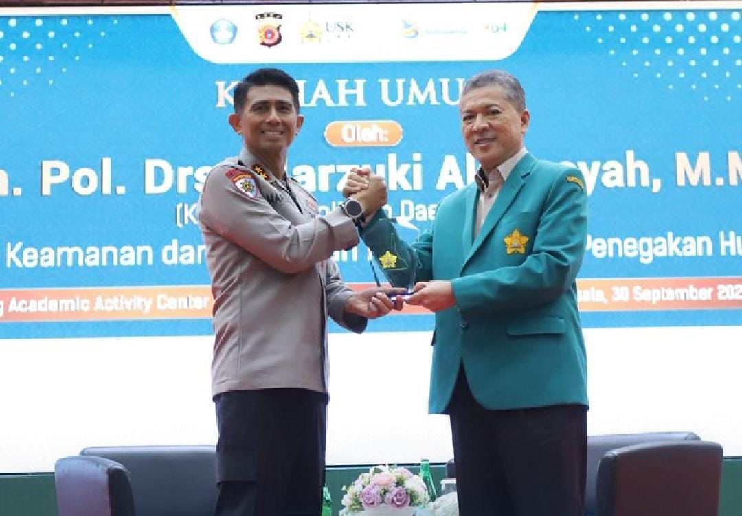 Global Cyber News.Com. -Banda Aceh — Kapolda Aceh Irjen Pol. Marzuki Ali Basyah tampil sebagai pembicara dalam kuliah umum di Universitas Syiah Kuala (USK) yang berlangsung di Gedung AAC Dayan Dawood, Selasa, 30 September 2025. Kuliah umum yang dihadiri ratusan mahasiswa lintas fakultas ini mengusung tema “Harmoni Keamanan dan Ketertiban Masyarakat serta Penegakan Hukum.”