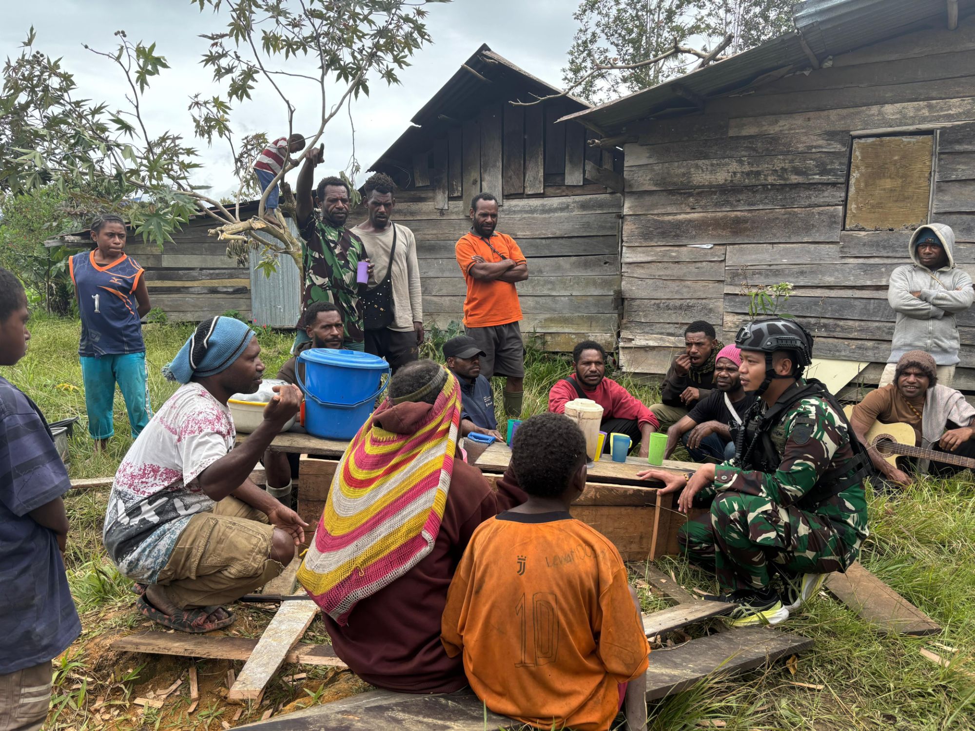Global Cyber News.Com. -Serambakon, Pegunungan Bintang.— Pos Serambakon Satgas Yonif 751/VJS menunjukkan kepedulian terhadap masyarakat Kampung Seramkatop dengan hadir di tengah keluarga yang berduka, memberikan dukungan moril dan membantu kebutuhan dasar di rumah duka. Kehadiran prajurit dimaksudkan sebagai pelipur lara, memperkuat kebersamaan TNI–rakyat, serta memastikan prosesi kedukaan berjalan tertib dan lancar (Selasa,14/10/2025)