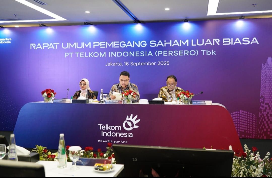 Global Cyber News.Com. -Jakarta – Rapat Umum Pemegang Saham Luar Biasa (RUPSLB) Telkom di Jakarta, Selasa utamanya penetapan perubahan susunan pengurus perseroan, sebagai bagian dari upaya memperkuat tata kelola perusahaan serta mendukung akselerasi transformasi yang dijalankan dalam lingkup TelkomGroup.