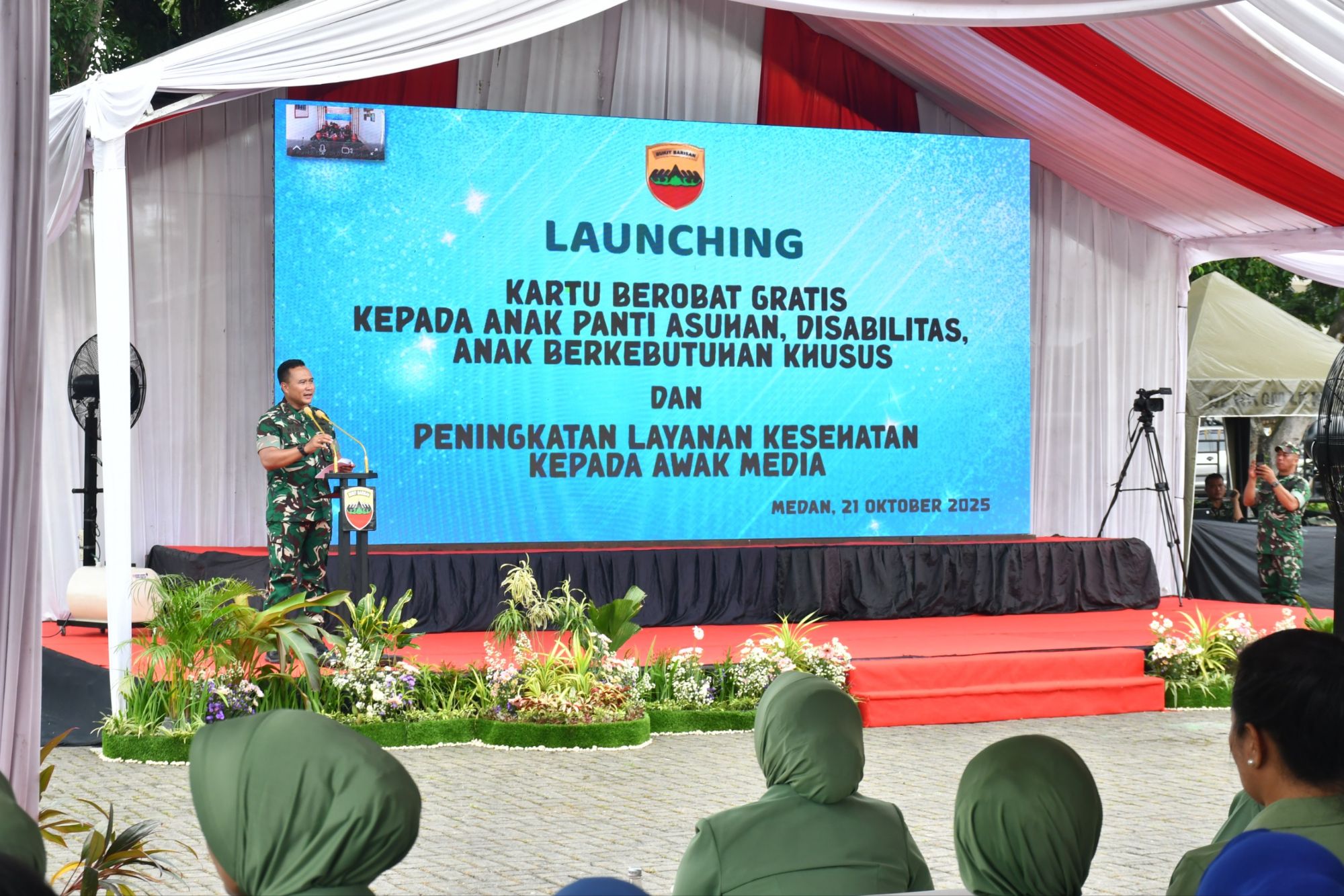“Launching kartu berobat gratis ini menjadi simbol kehadiran TNI di tengah masyarakat. Kami ingin meringankan beban dan memberi harapan bagi anak panti, disabilitas, dan awak media,” ujar Pangdam I/BB Mayjen TNI Rio Firdianto.