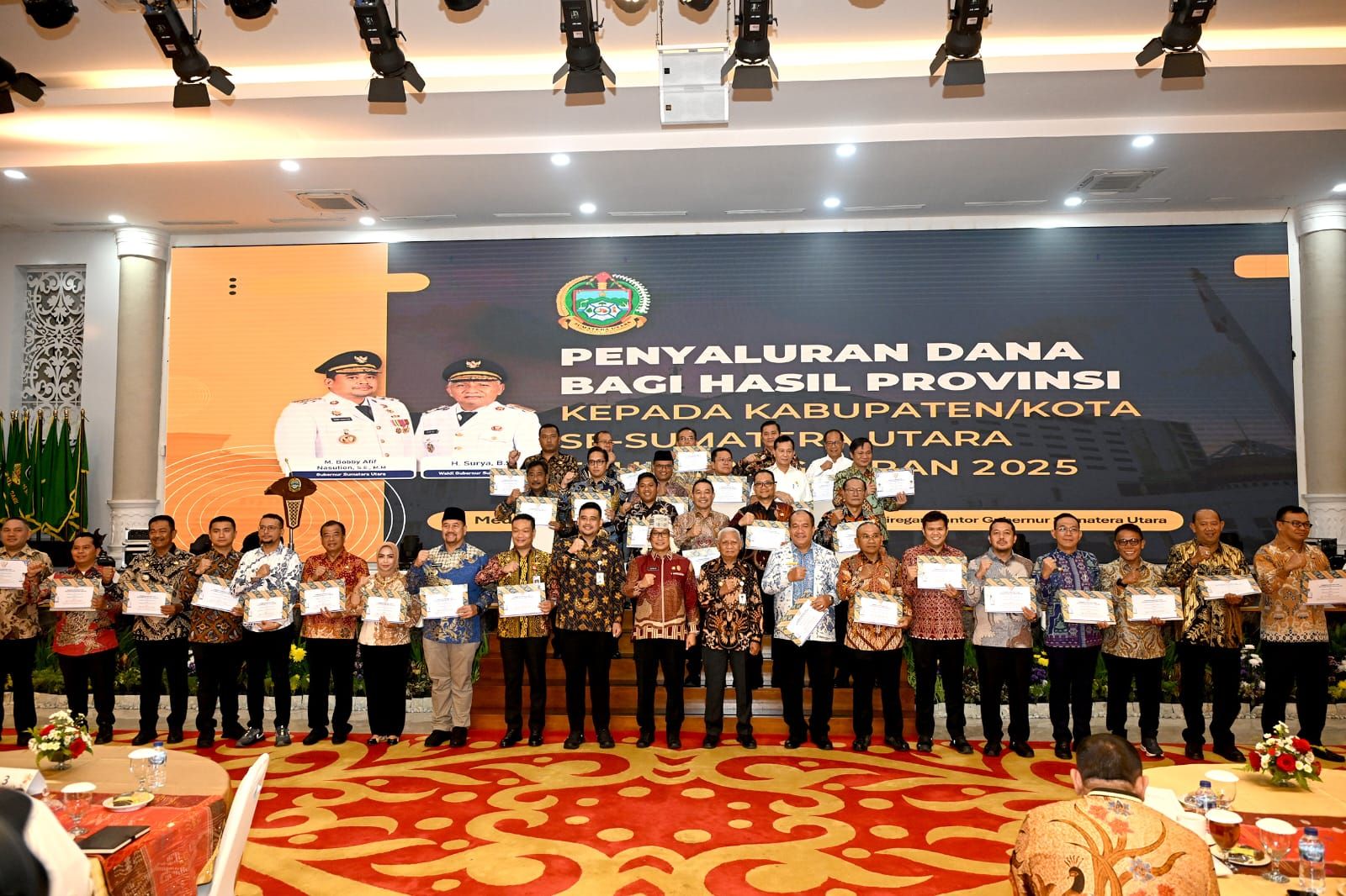Kegiatan distribusi DBH ini dirangkaikan dengan agenda Penguatan Penerapan Manajemen ASN, yang dihadiri oleh Kepala Badan Kepegawaian Negara (BKN) Zudan Arif Fakrulloh, Wakil Gubernur Sumut Surya, seluruh bupati/wali kota se-Sumut, serta pimpinan OPD Pemprov dan kabupaten/kota. (r/pl)