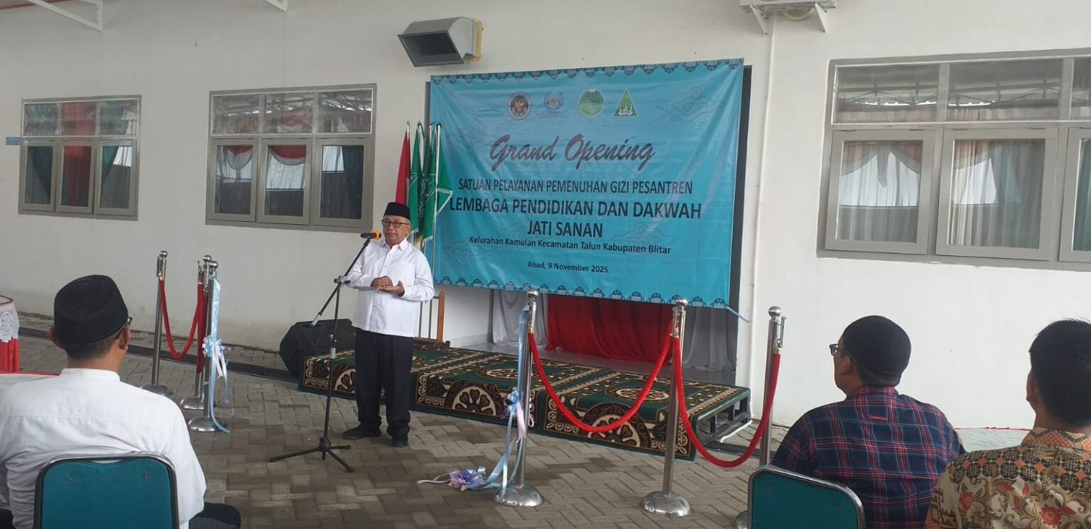 Dalam rangka memperkuat upaya peningkatan kesehatan dan pemenuhan gizi masyarakat, Bupati Blitar Drs. H. Rijanto, M.M., meresmikan Satuan Pelayanan Pemenuhan Gizi (SPPG) di Pondok Pesantren (PP) Jati Sanan, Kelurahan Kamulan, Kecamatan Talun, pada Minggu (9/11/2025).