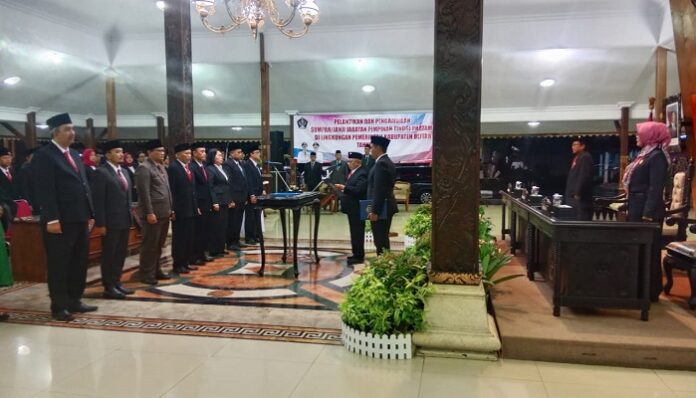 “Pejabat yang baru dilantik diharapkan mampu menjawab tantangan pembangunan daerah dengan inovasi, integritas, dan komitmen pelayanan publik. Jabatan adalah amanah, bukan sekadar posisi,” ujar Bupati Rijanto.